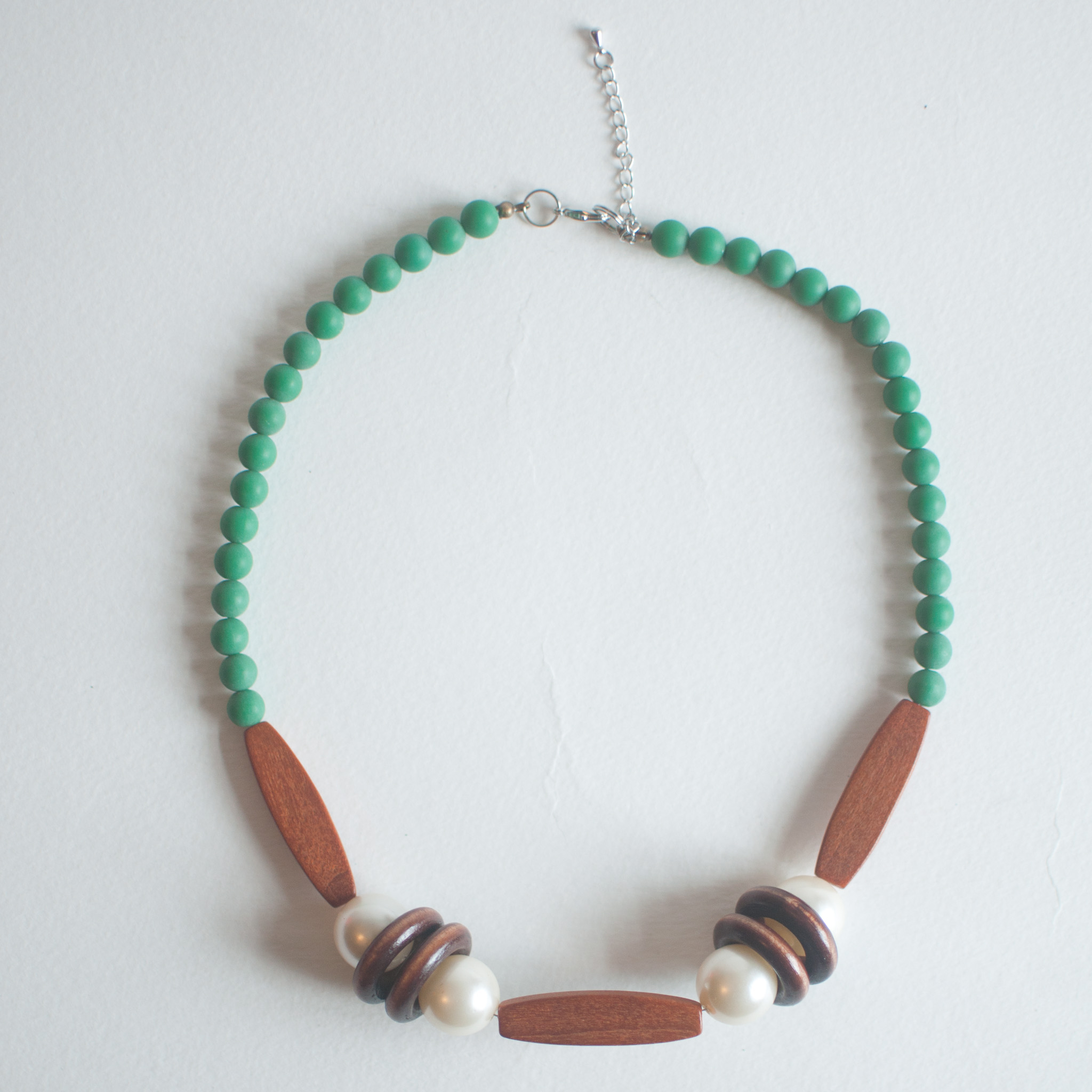 Green Resin Brown Tube Wooden Glass Pearl Round Disc Statement Necklace, Resin Beaded Collar Necklace, Earth Tone Necklace NL0755