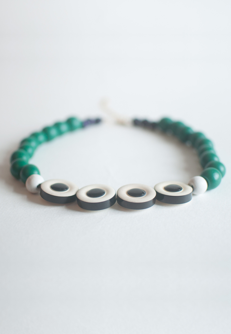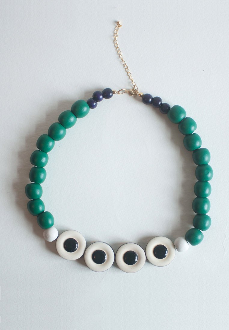 Mixed textures of statement necklace with colorful beads. Ideal gift for females for everyday outfit.