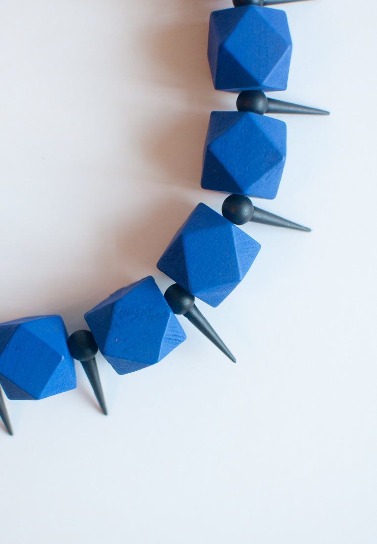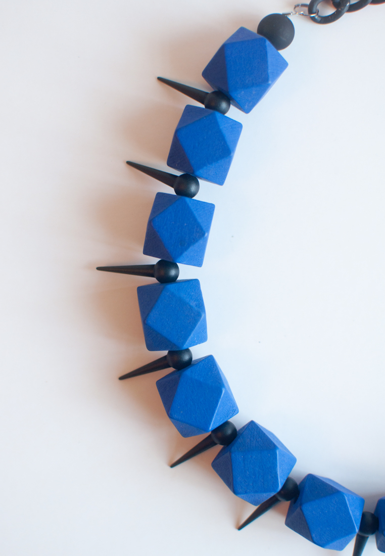 Blue Geometric Beaded Needle Statement Necklace, NL0757
