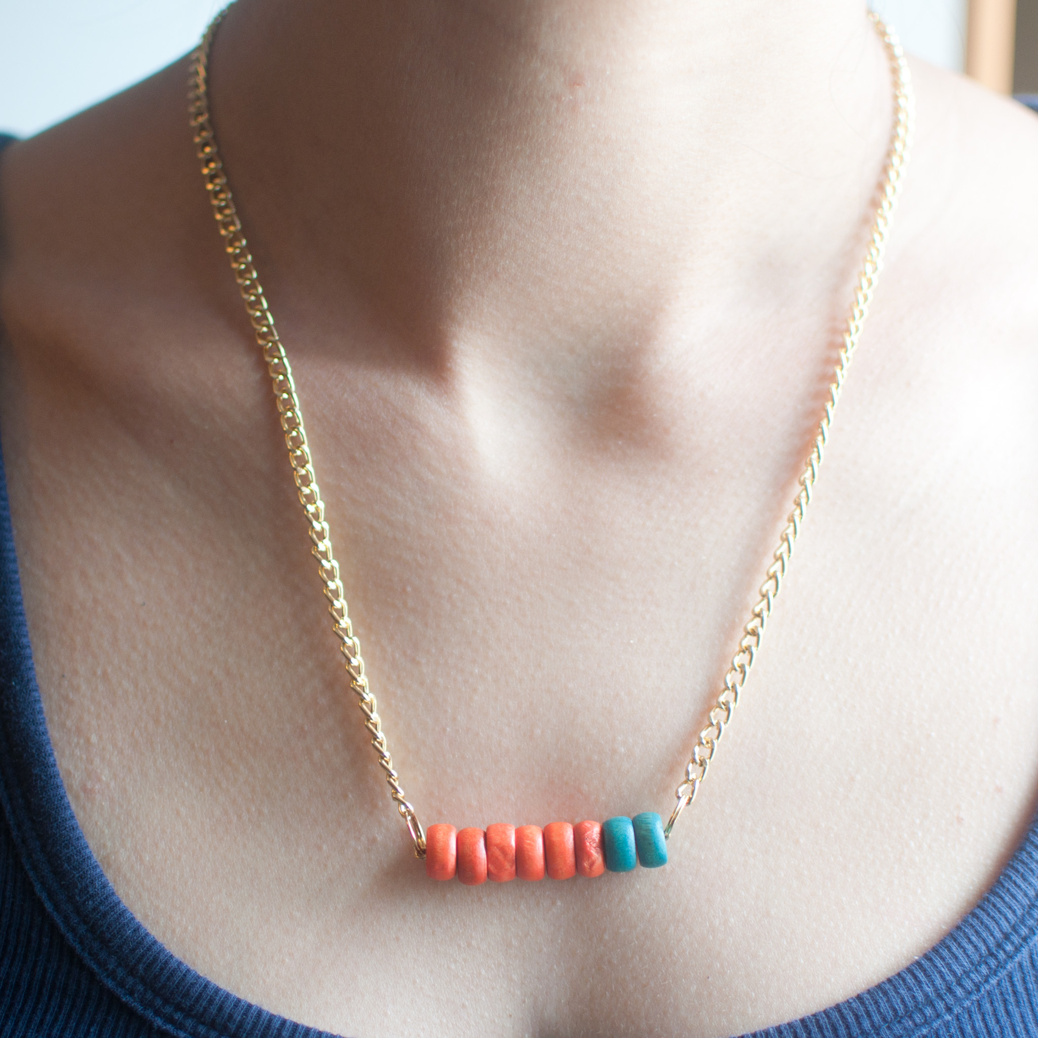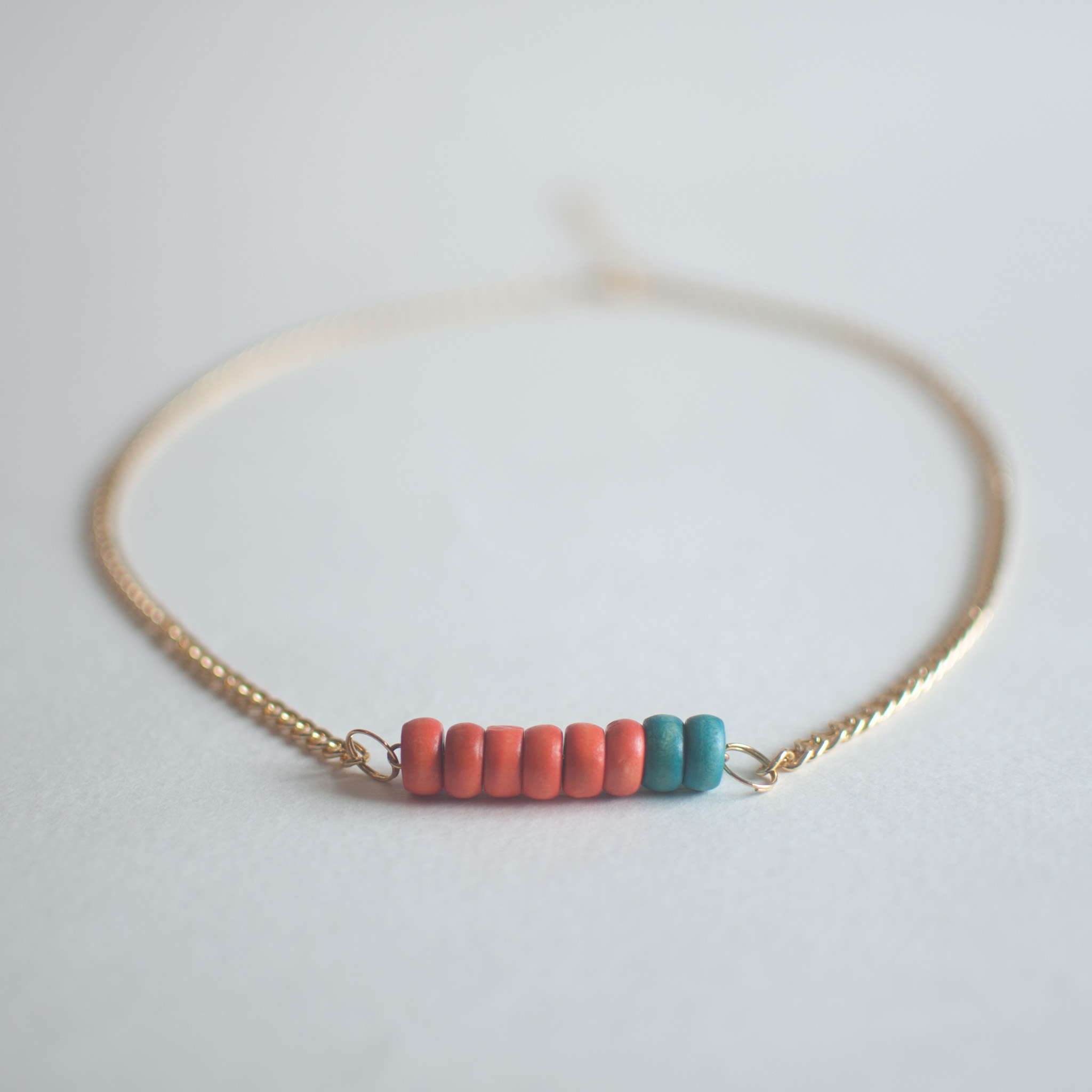 Orange Green Blue Wood Resin Small Beads Pendant Necklace, Initial Small Beaded Necklace, Locket Initial Pendants Necklace, NL0744