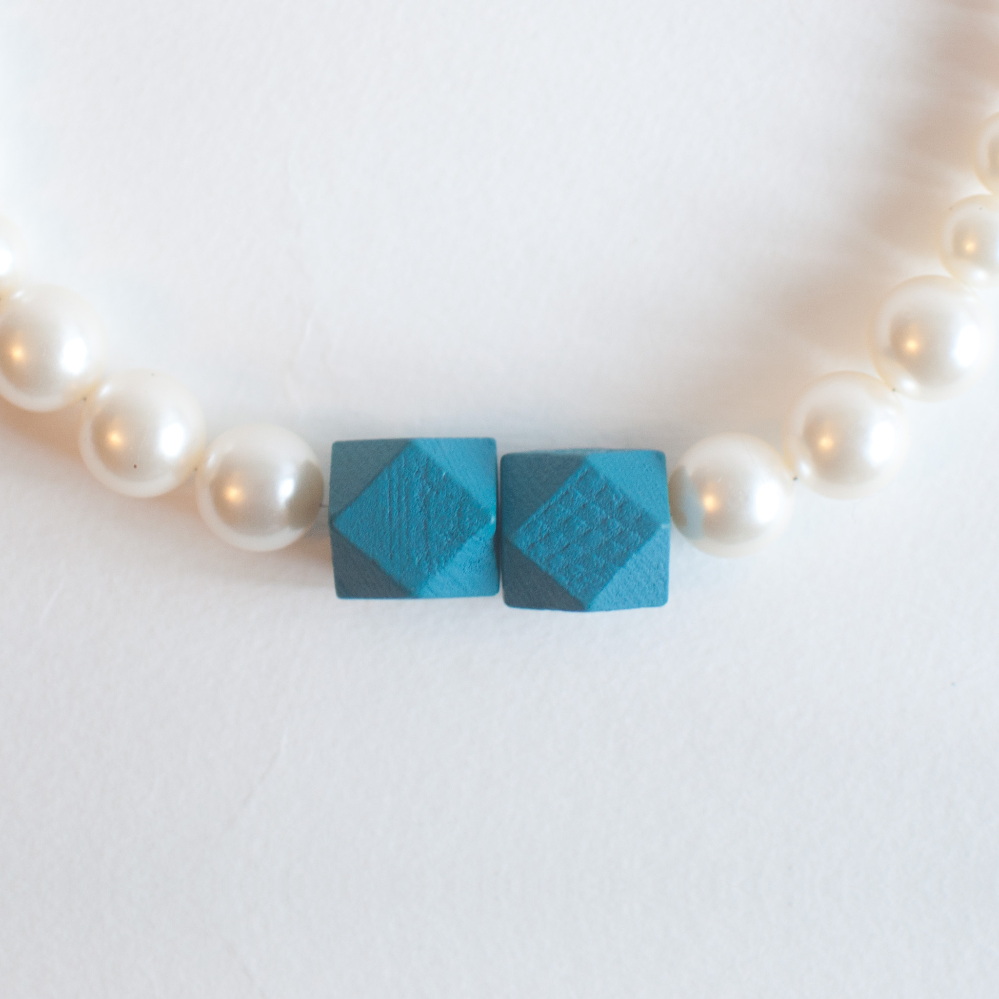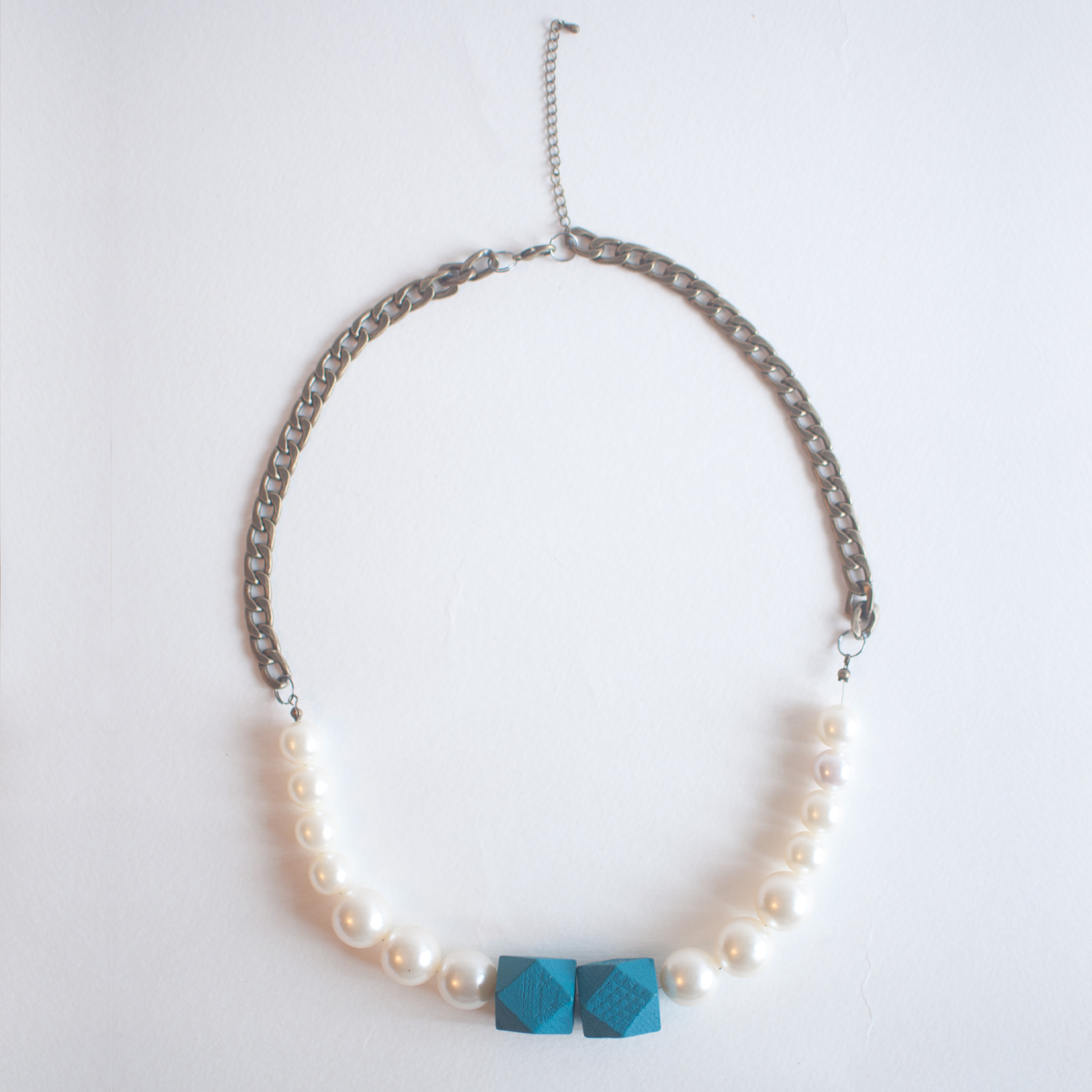 Length: 22 1/2" Extender: 2 1/2" Lobster clasp closure Weight: 52g Resin / wood / copper / brass