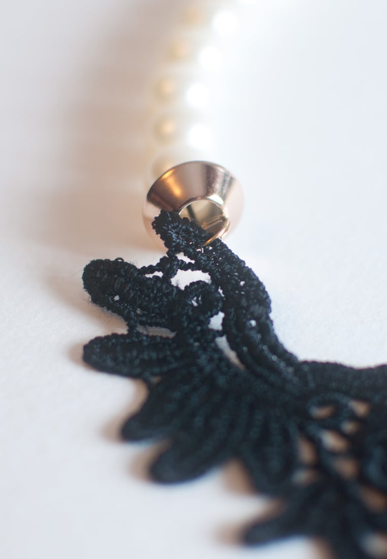 Black Lace Faux Pearl Victorian Necklace NL0692