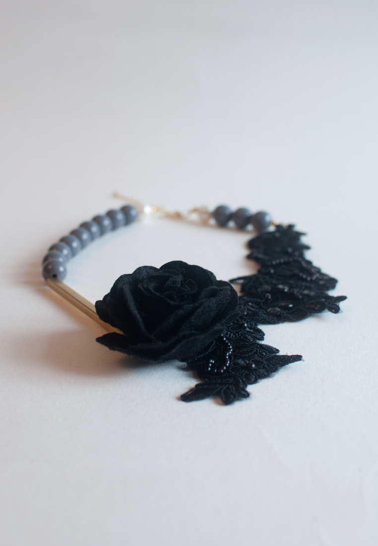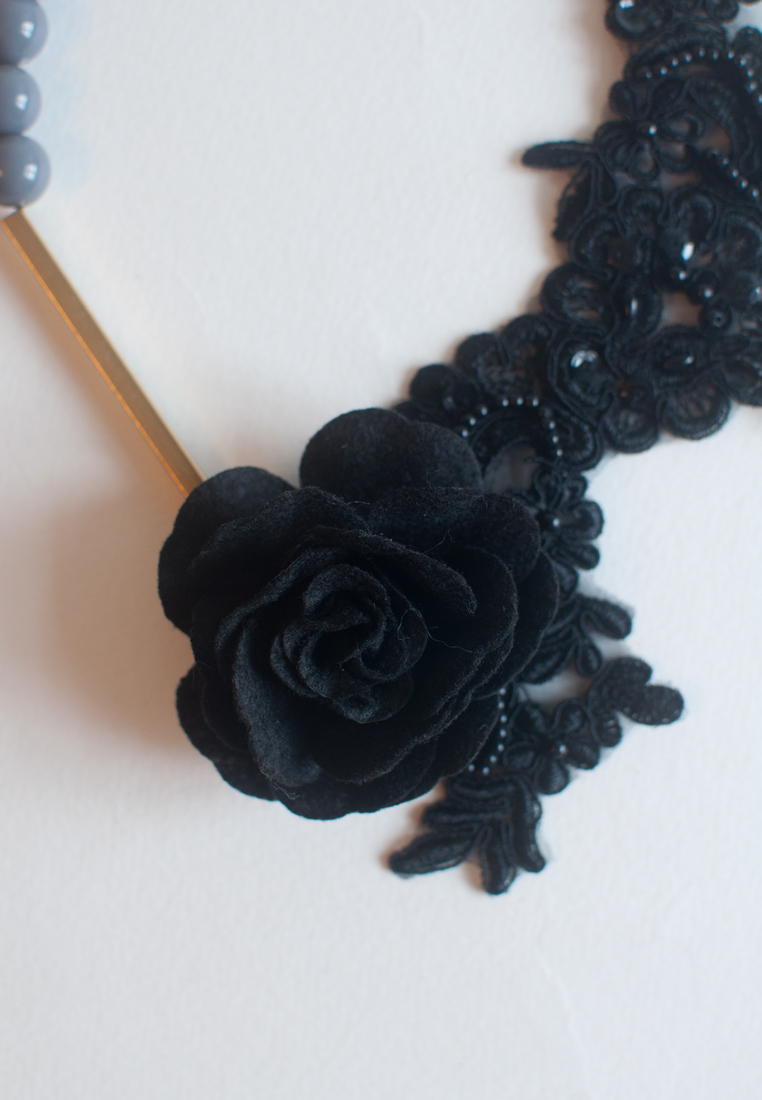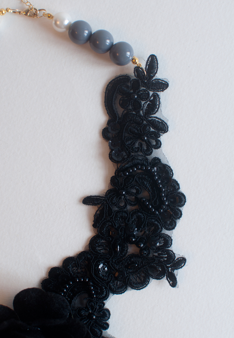 Black Lace Gold Metal Statement Necklace, NL0727