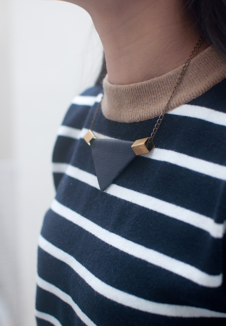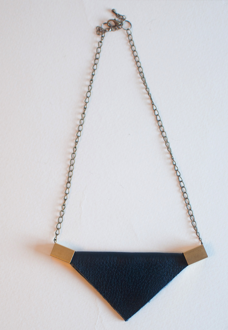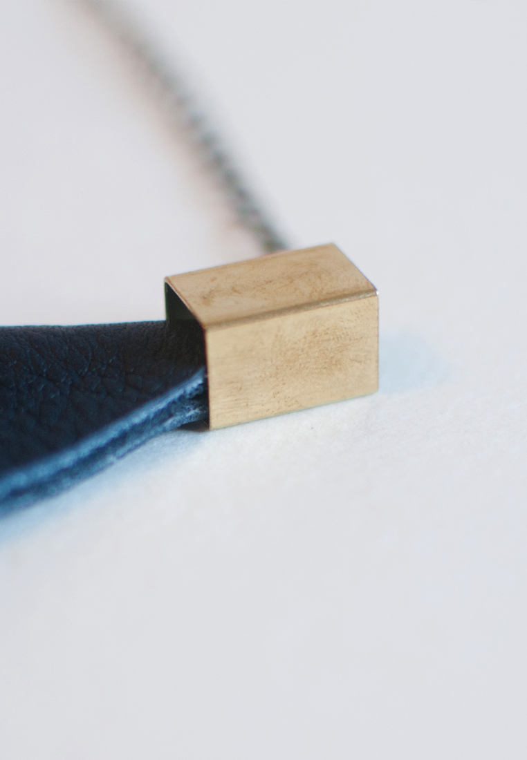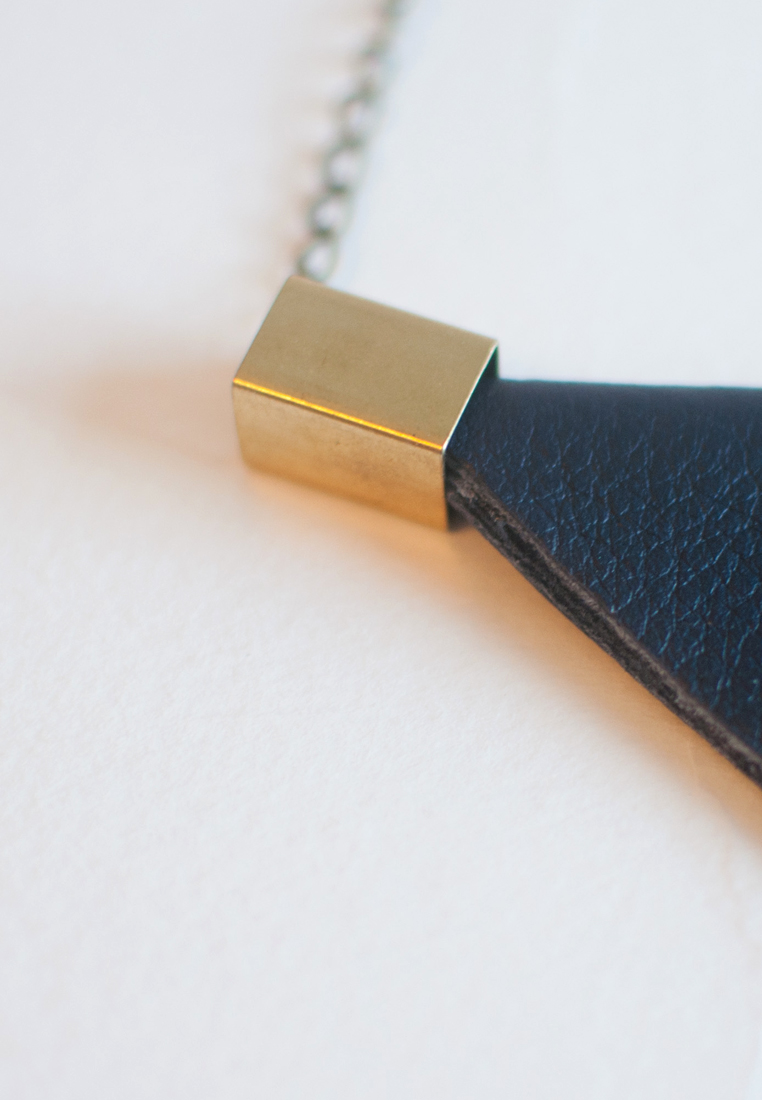 Blue Leather Gold Metal GeometricTriangle Pendant Necklace NL0737
