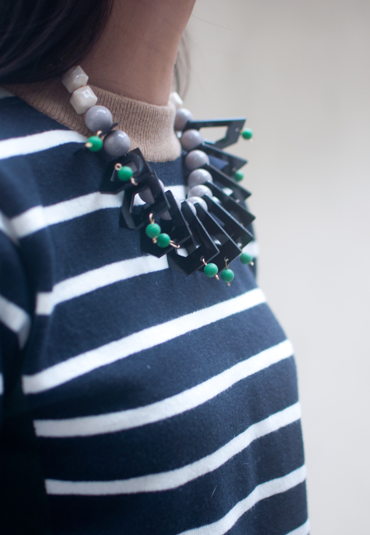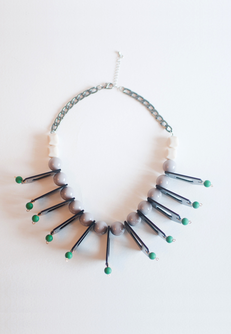 Green White Wooden Statement Necklace NL0949