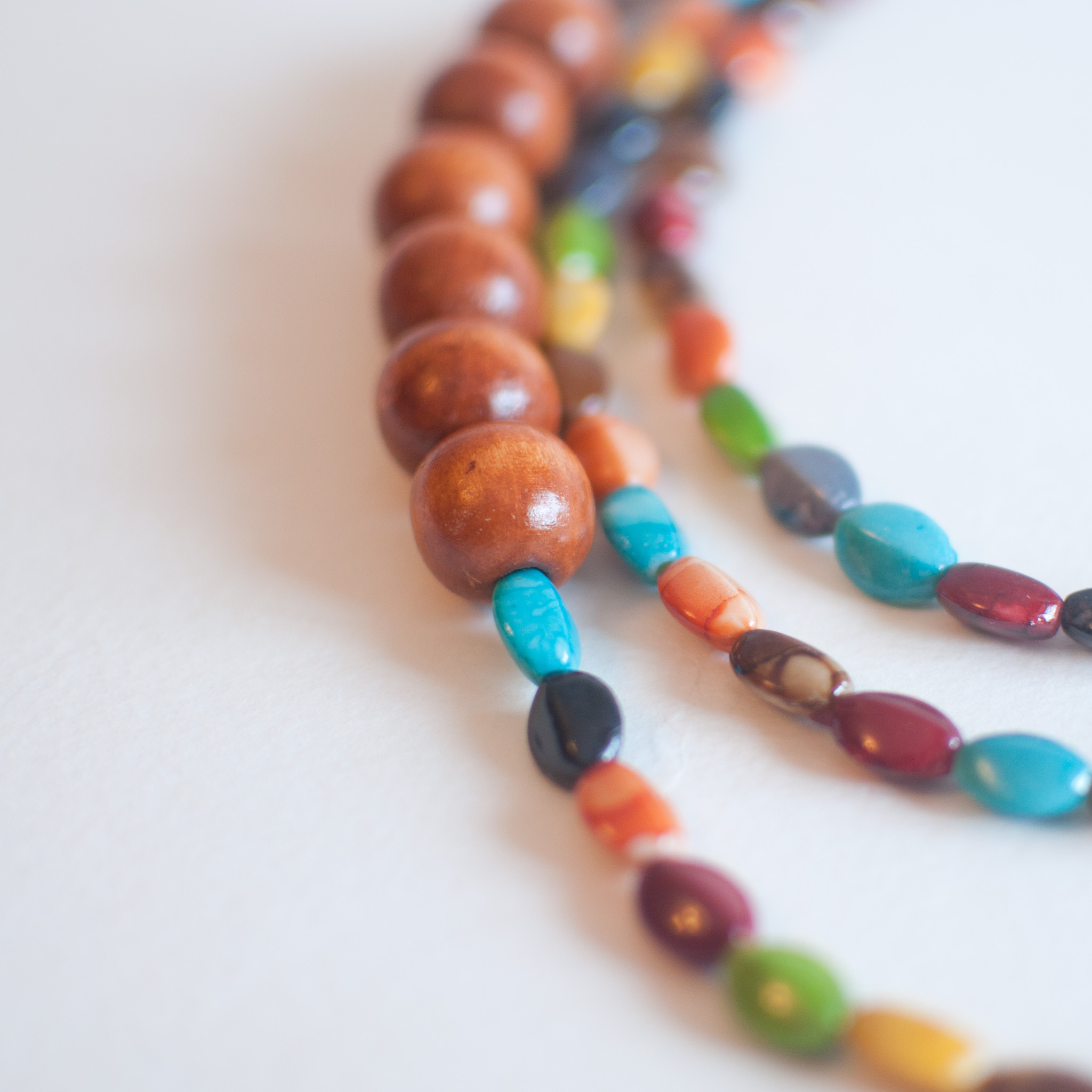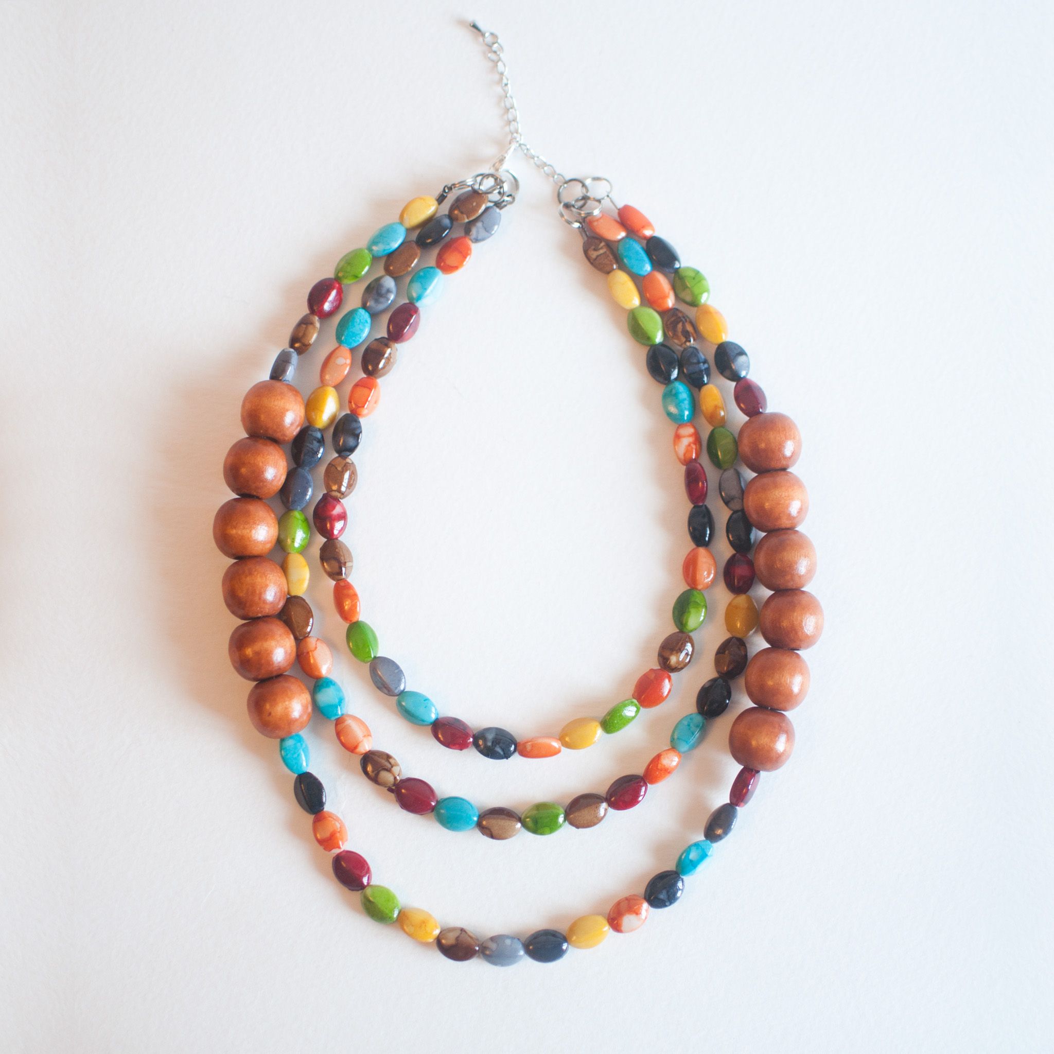 Colorful Glass Wood Beaded Multistrand Necklace NL0649