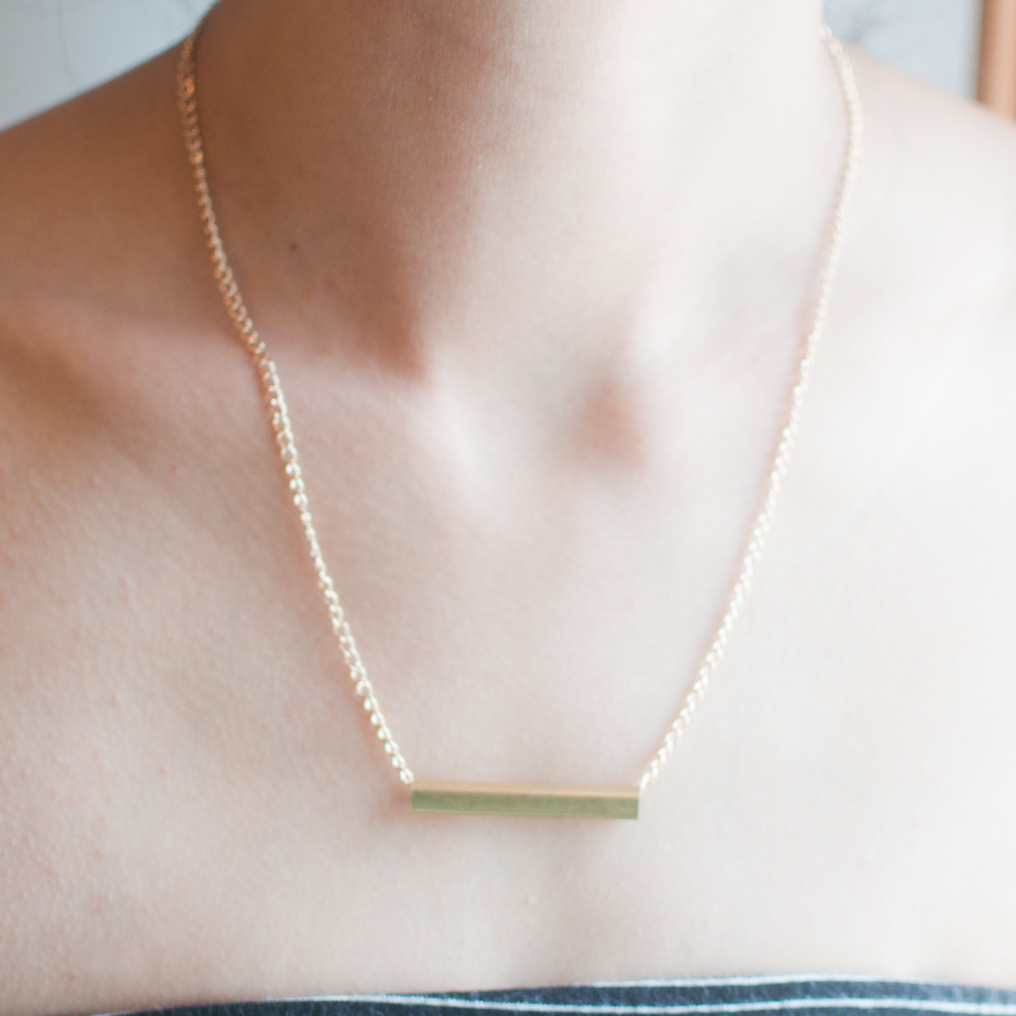 Gold Metal Bar Pendant Necklace, NL0723
