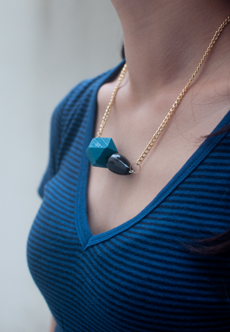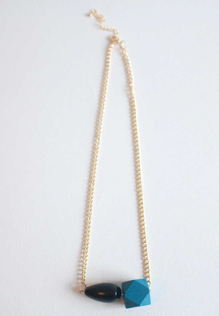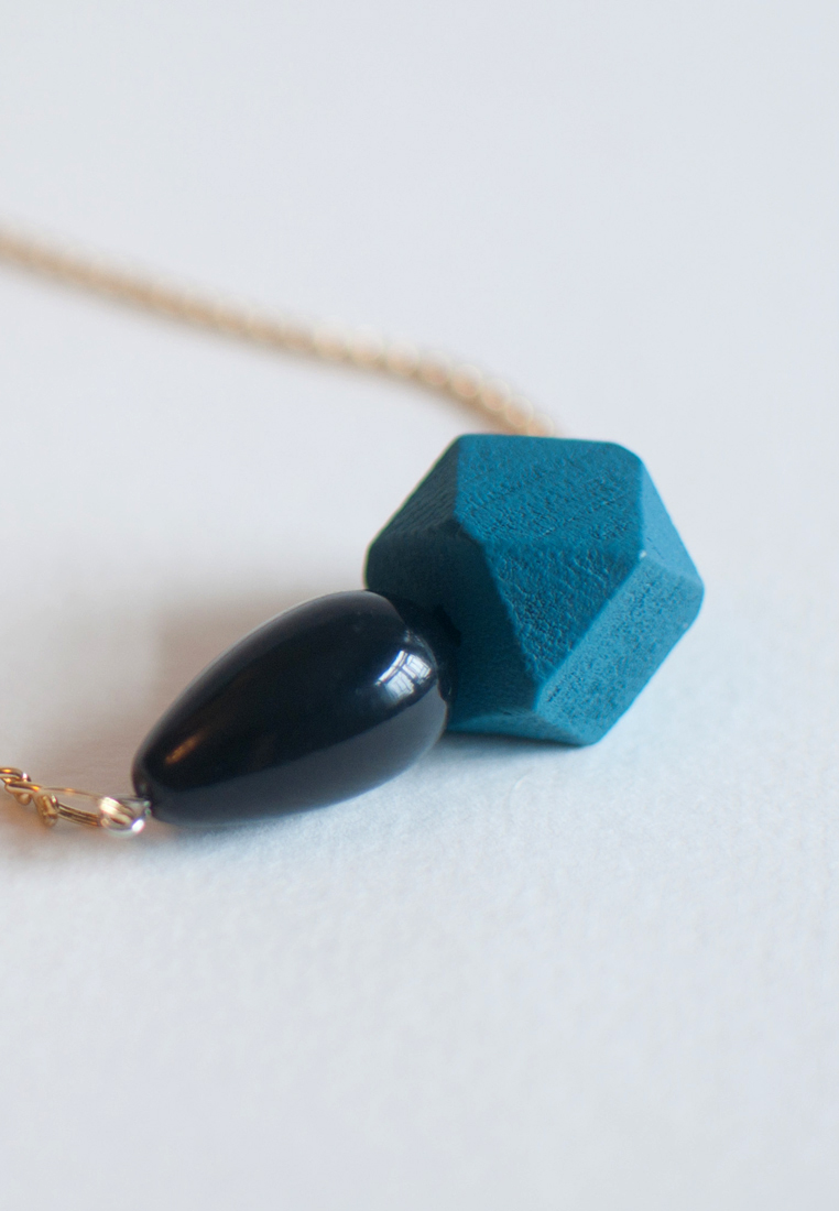 Green Blue Geometric Black Teardrop Wood Plastic Arcylic Beaded Necklace NL0733