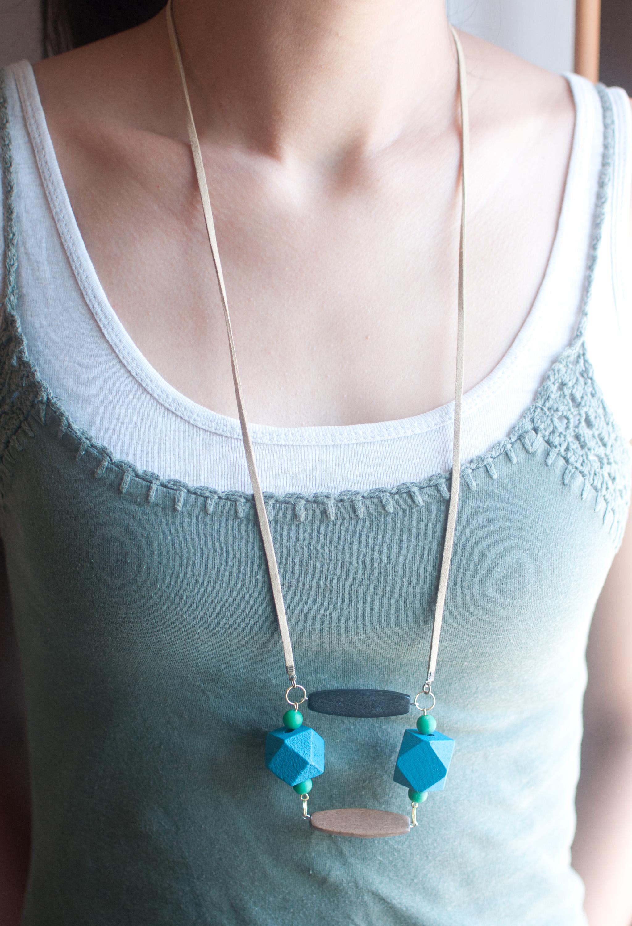 Blue Green Wooden Necklace NL1050