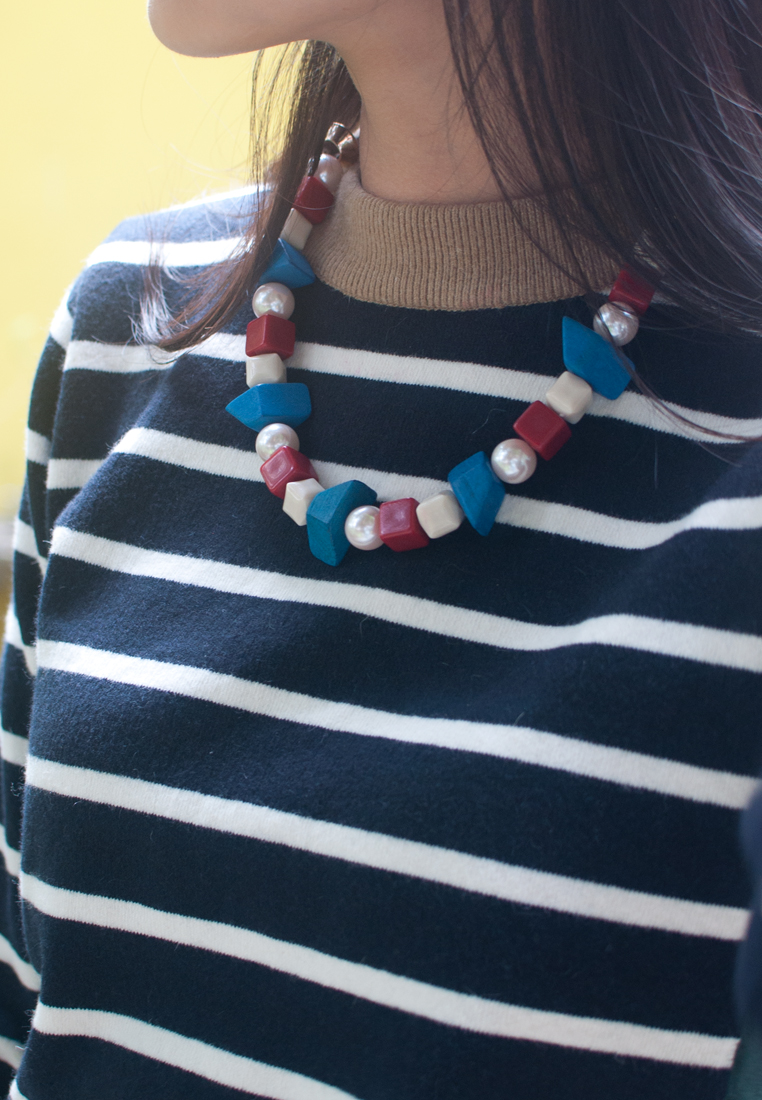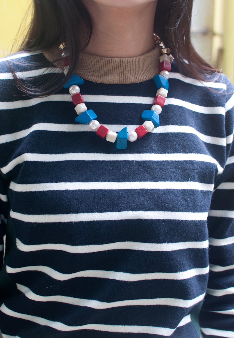 Mixed Beaded Bib Red White Blue Chunky Statement Necklace NL0614