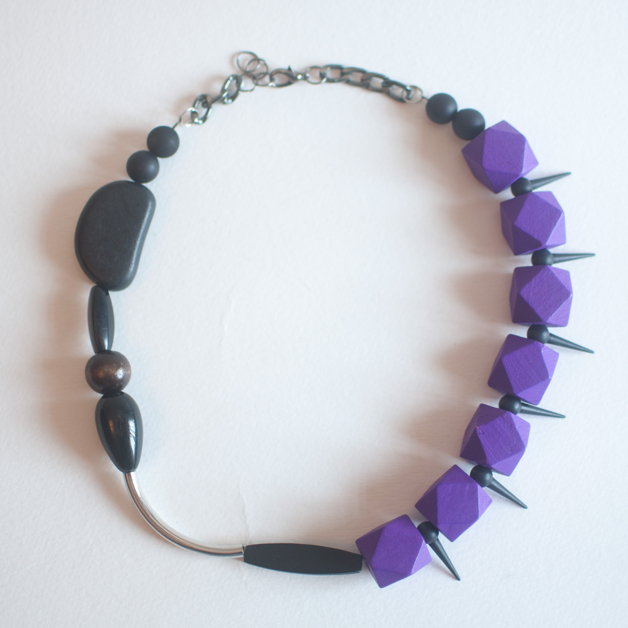 Purple Silver Metal Chunky Statement Necklace, NL0664