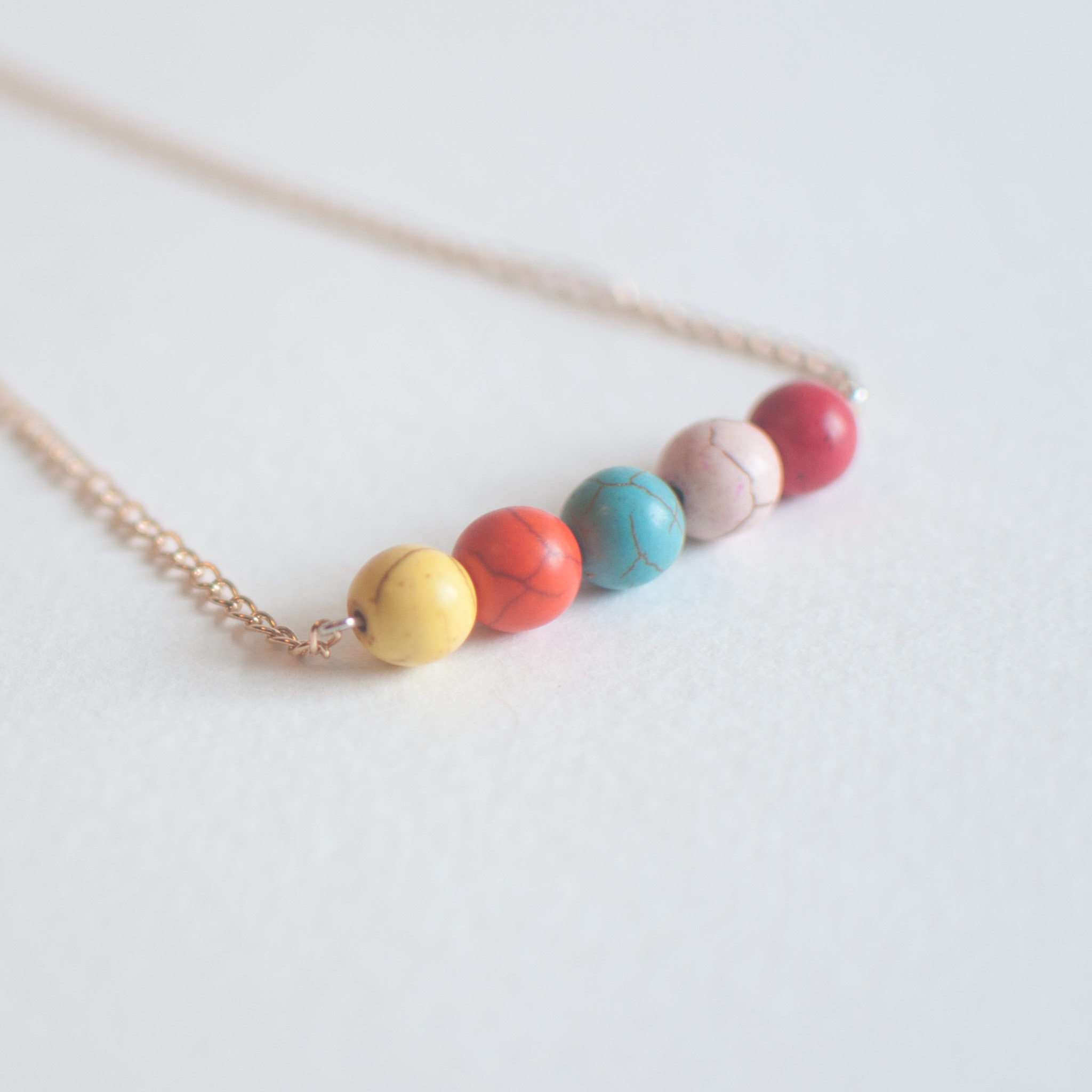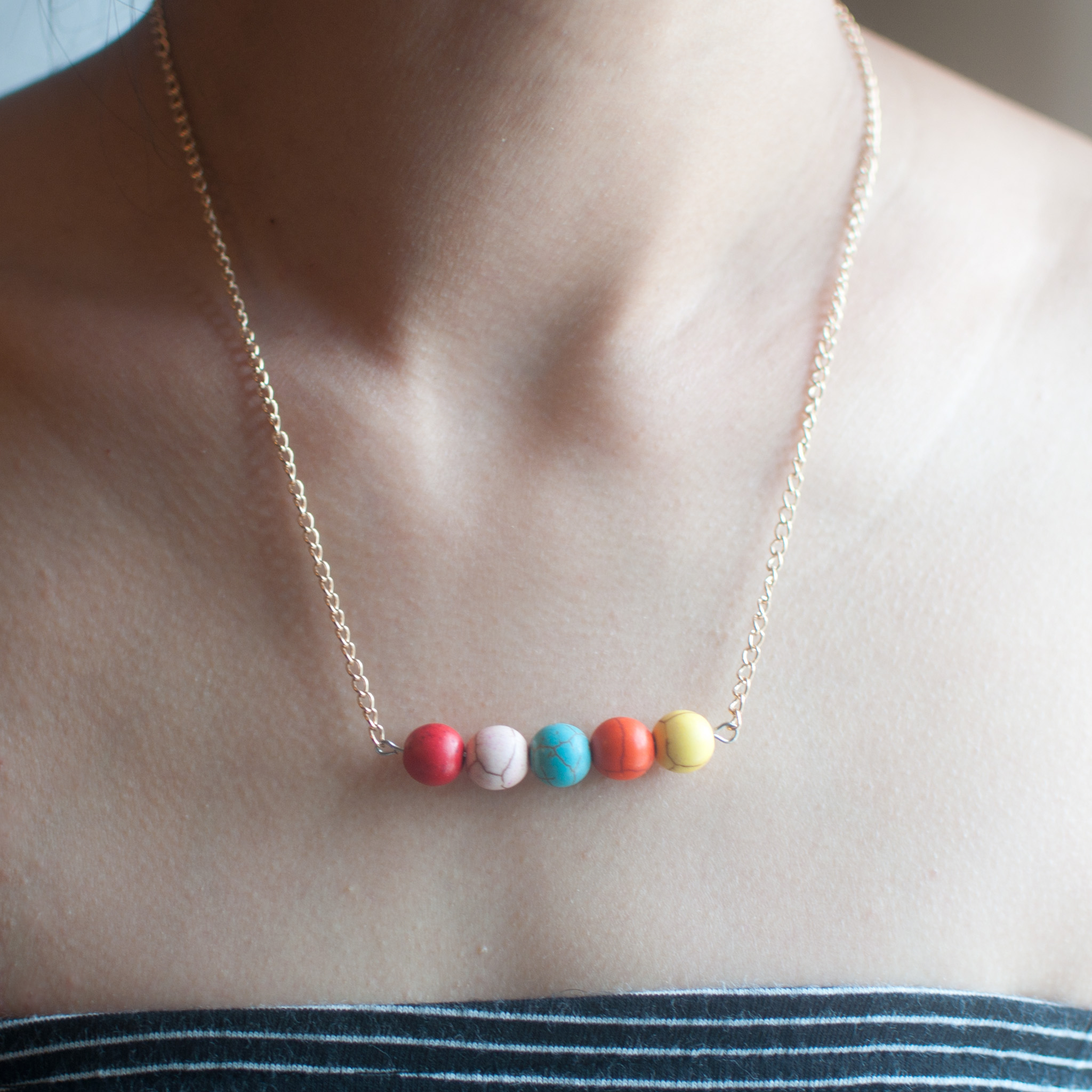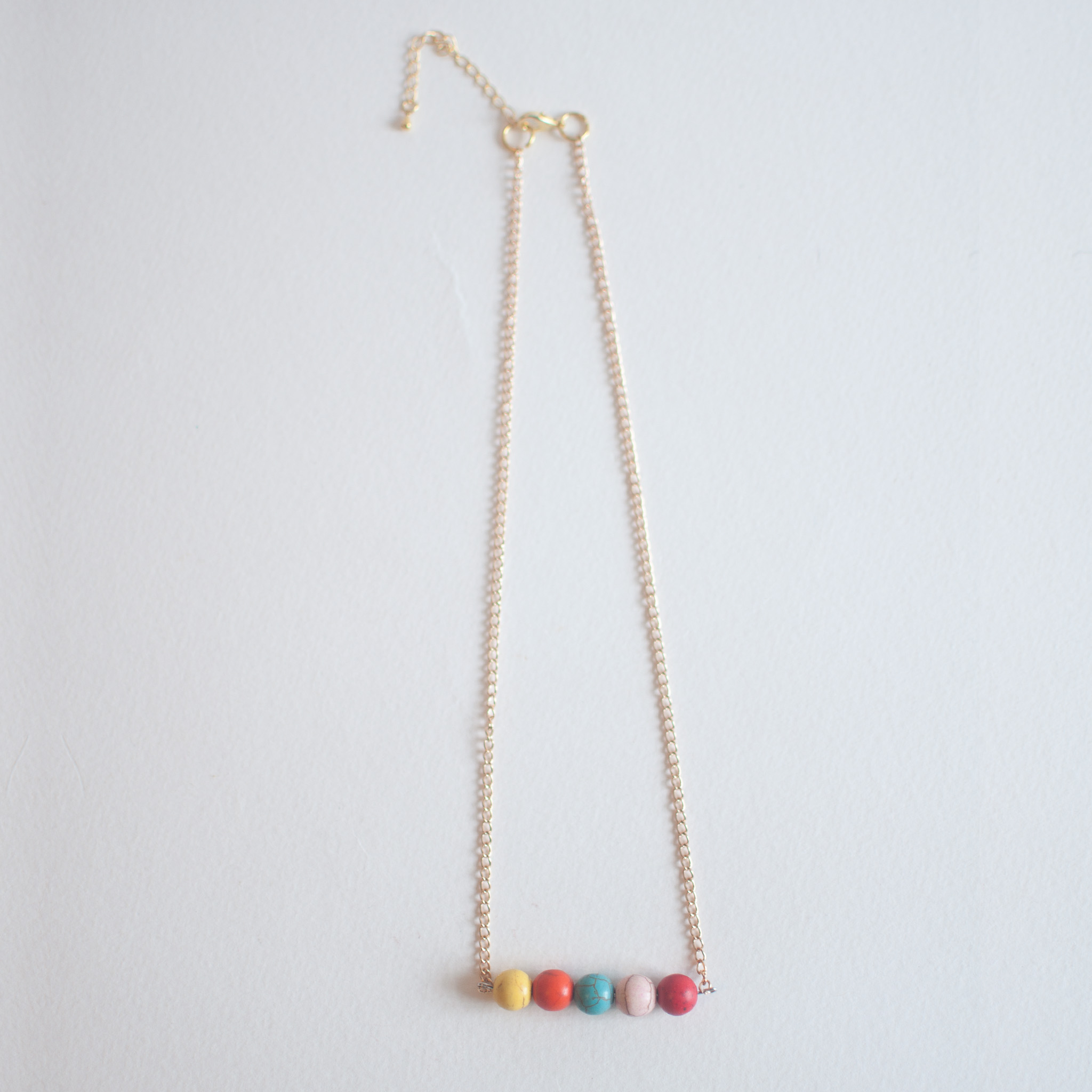 Orange Green Blue Wood Resin Small Beads Pendant Necklace, Initial Small Beaded Necklace, Locket Initial Pendants Necklace, NL0744