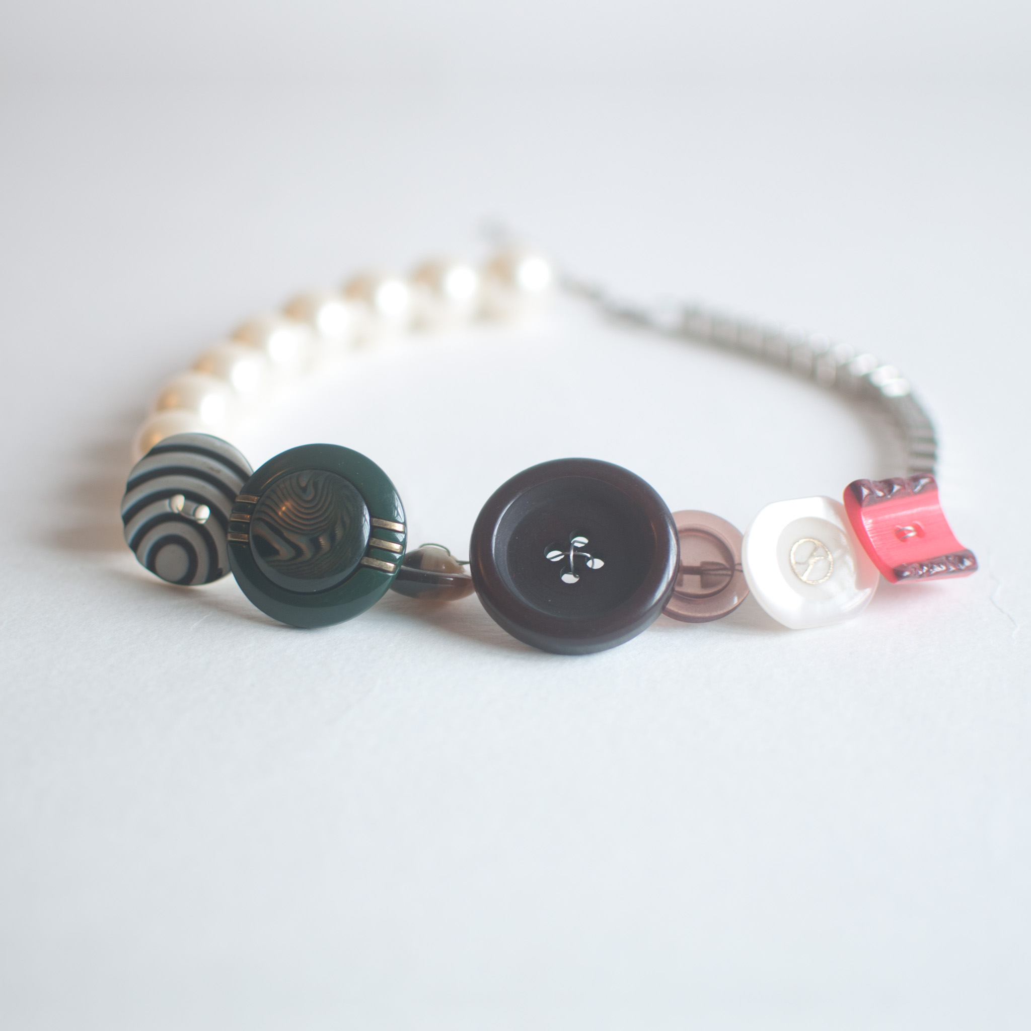 Vintage Button Coins Bucket Mixed Statement Necklace, NL0739
