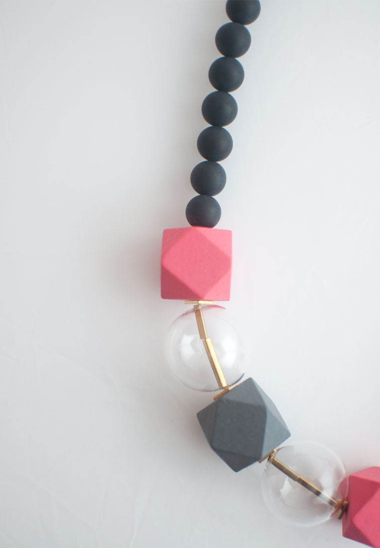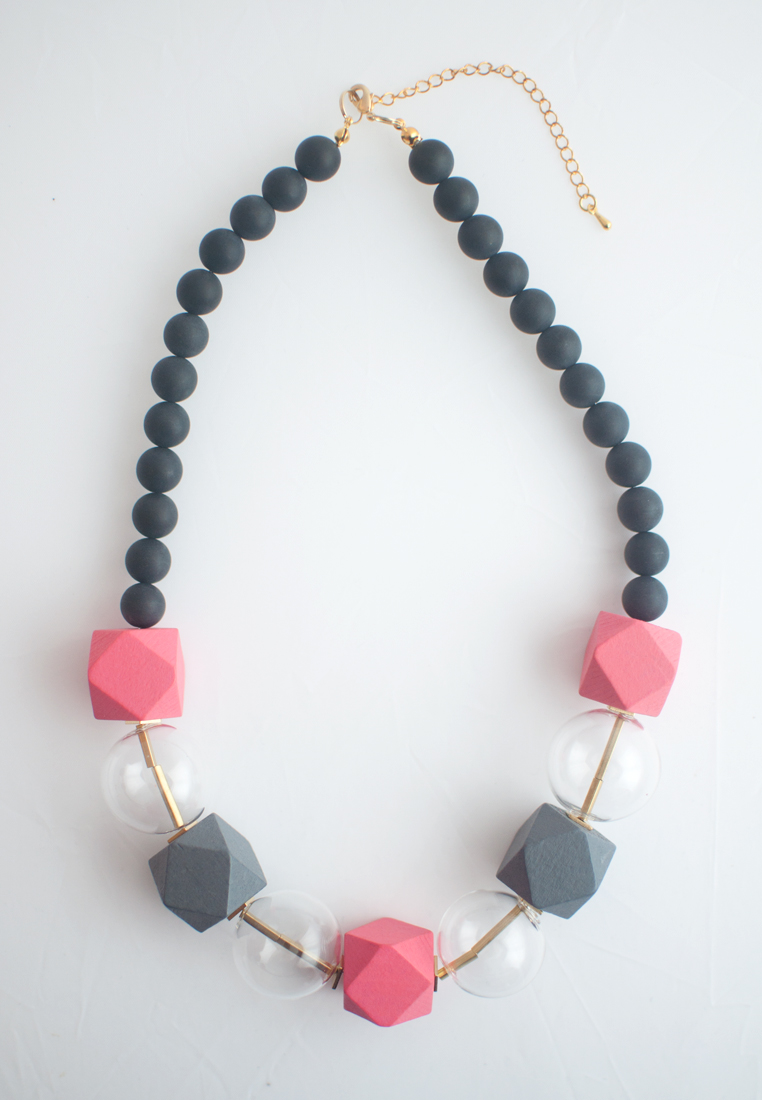 Make a bold, global-chic with this large statement necklace mixed and matched by different materials and colors.