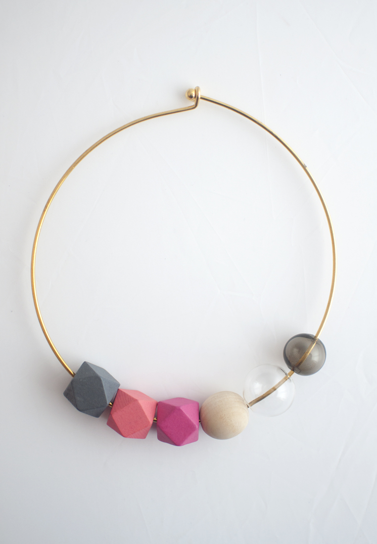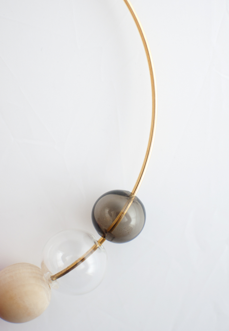 Length: 18" Weight: 21g Lobster clasp closure Wood / glass / copper / brass