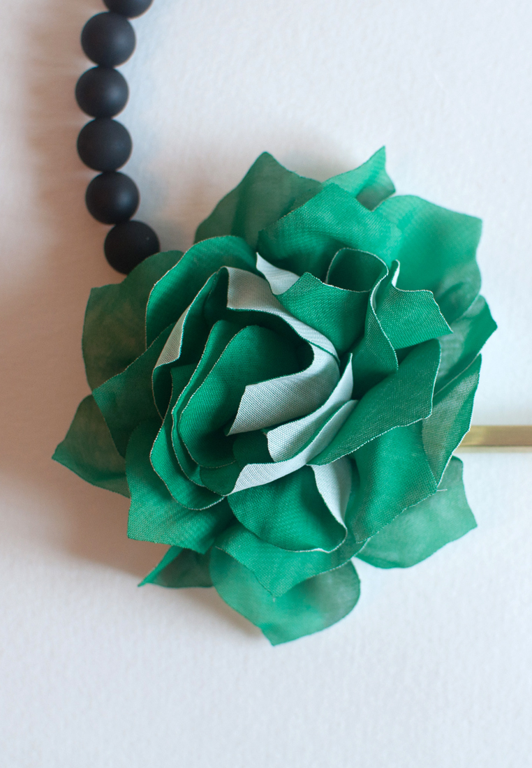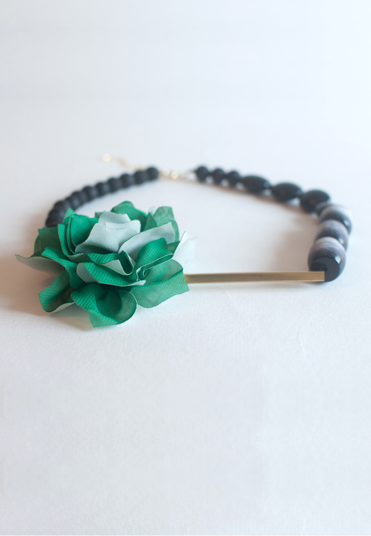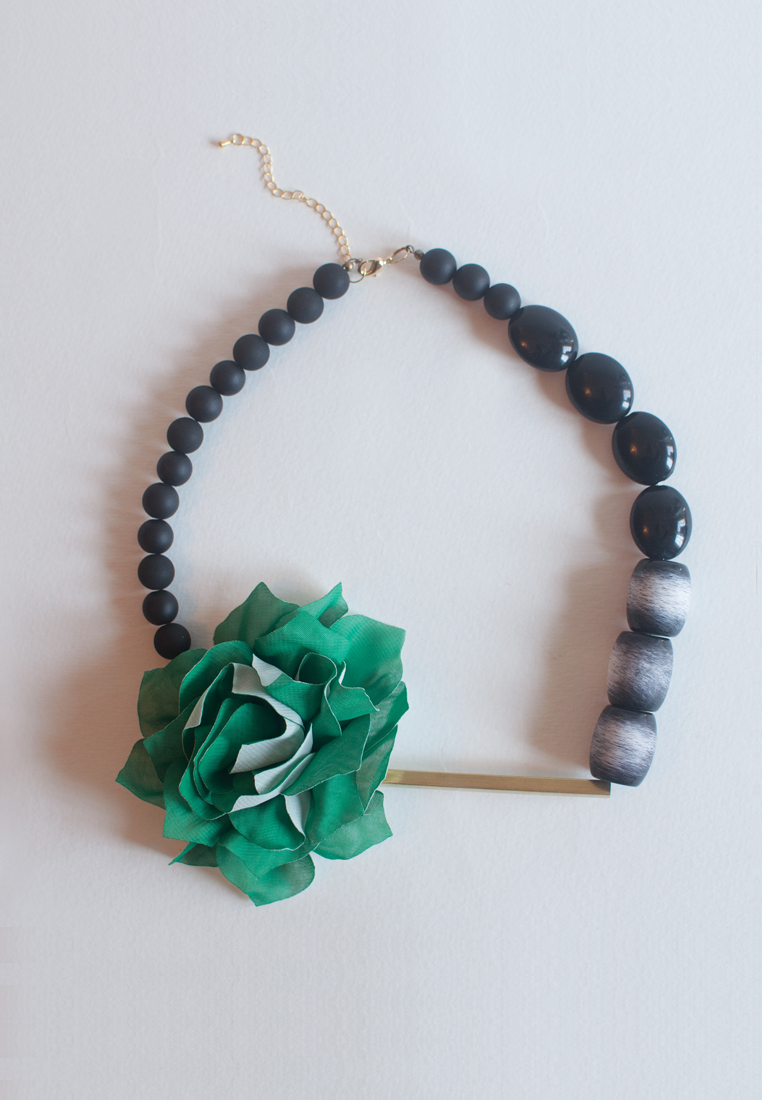 Polyster Cotton Green Flower Necklace, Chunky Flower Statement Necklace, Gold Metal Bar Antique Necklace Floral Styles, NL0769