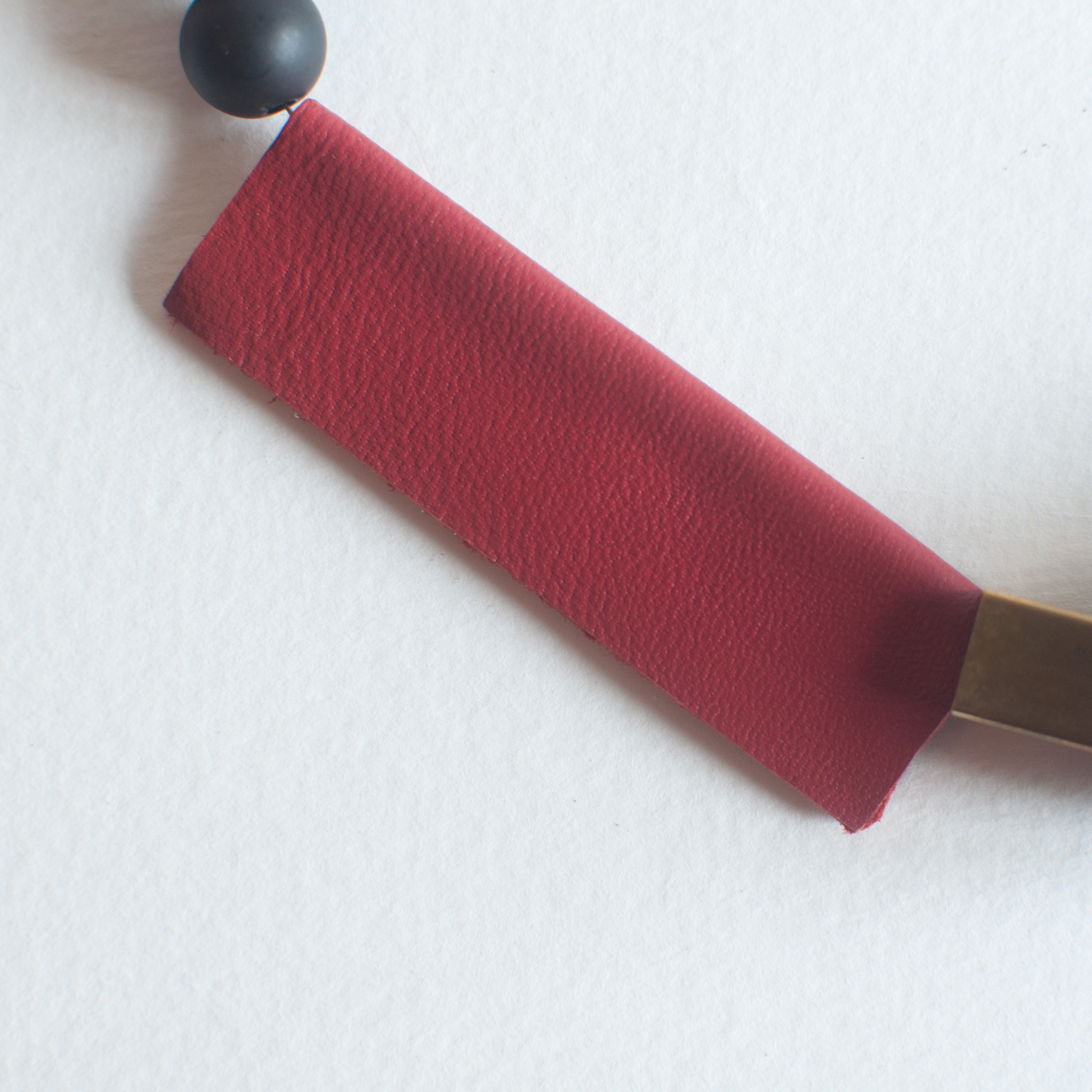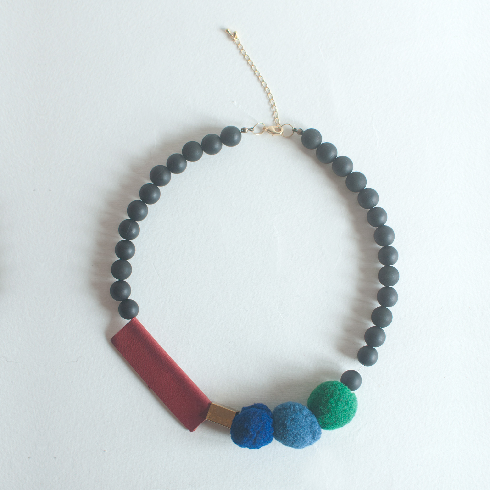 Leather Red Felt Balls Gold Metal Necklace, Felted Wool Navy Blue Green Unique Necklaces, Handcrafted Jewellery, NL0772