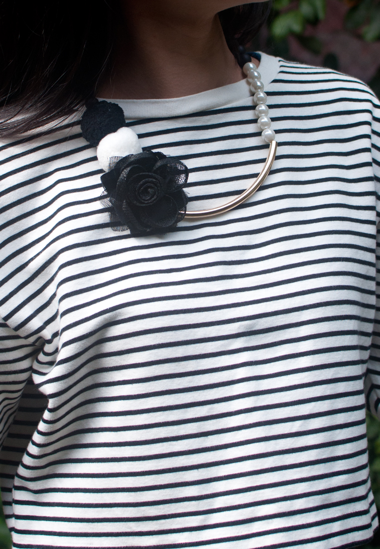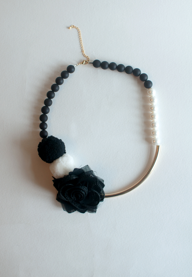Black Lace Flower Onyx Matte Beaded Gold Metal Bar Choker Necklace, Wedding Necklace, Bridal Necklace, NL0789