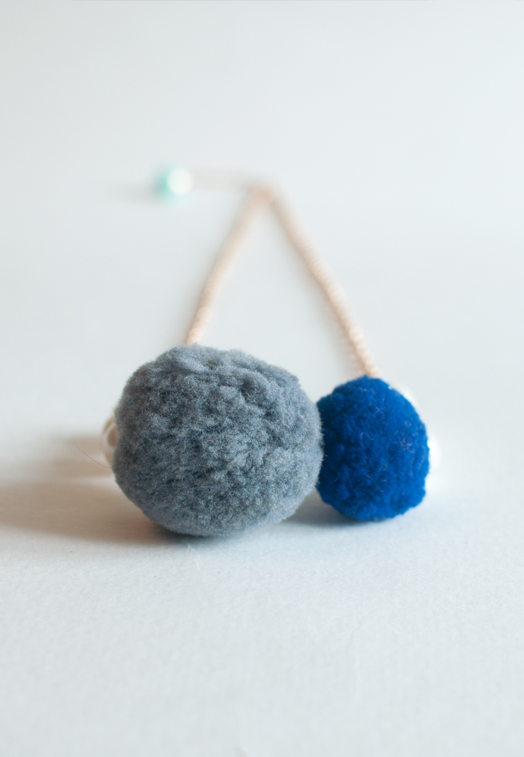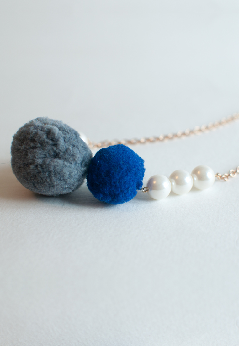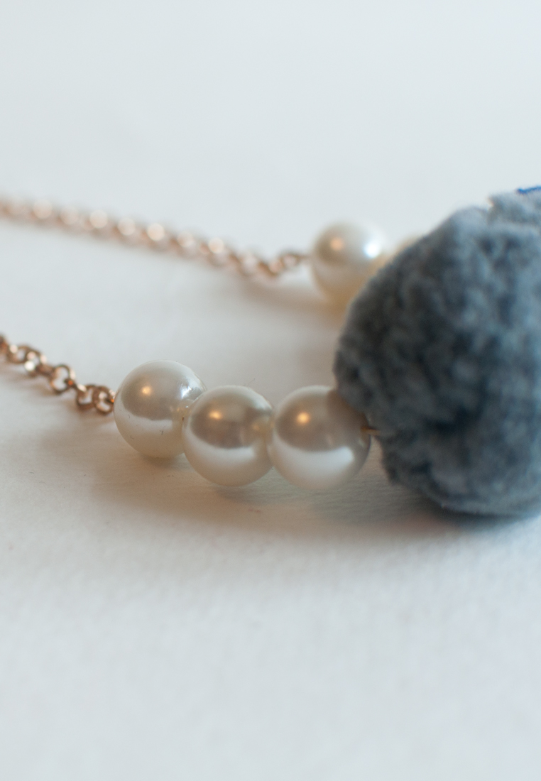Navy Blue Felt Flower Green Balls Statement Necklace NL0828