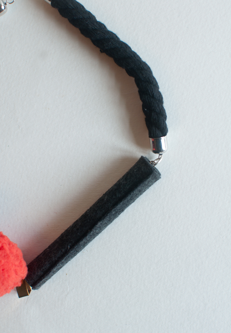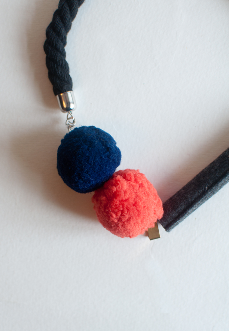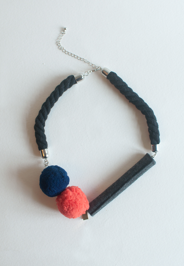 Diy Fabric Gray Bar Felt Balls Statement Necklace, Dark Blue Orange Cotton Collar Necklace, Costume Jewelry Necklace, NL0788