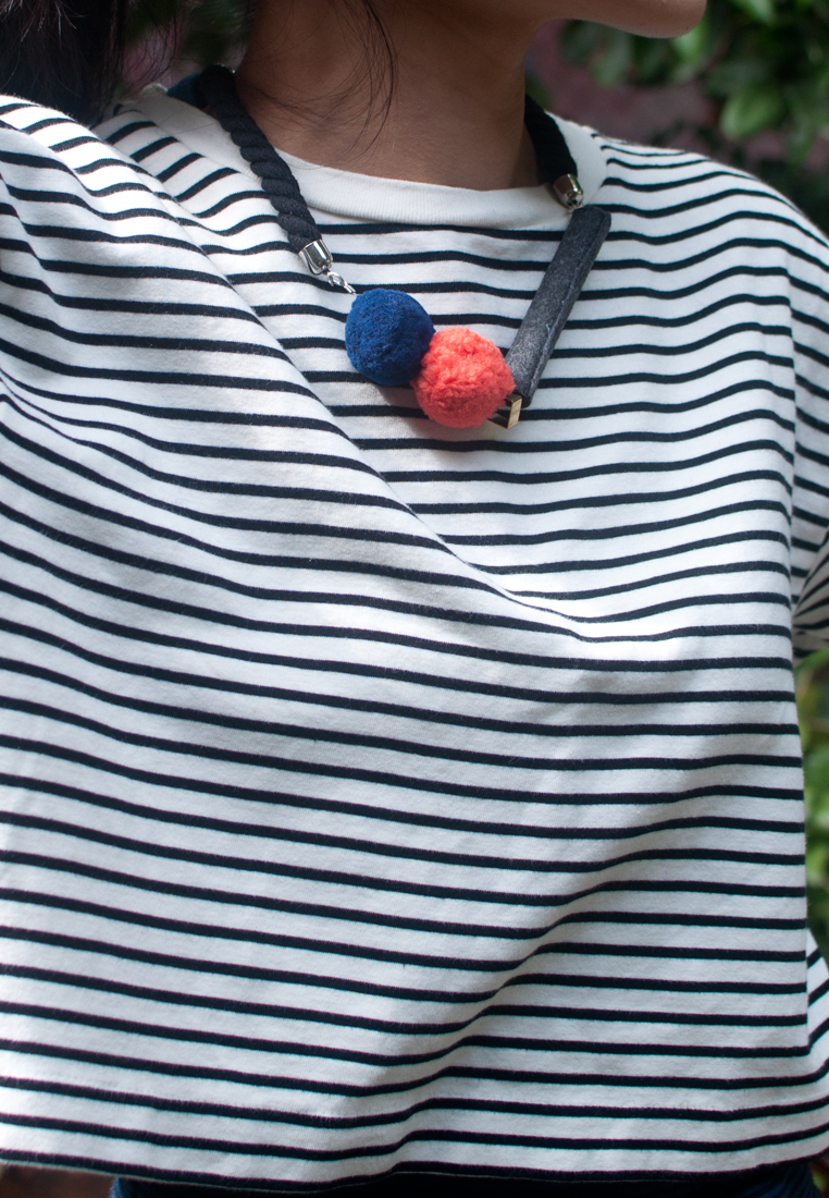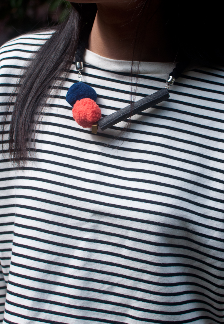 DIY Grey Fabric Balls Necklace by sanwaitsai