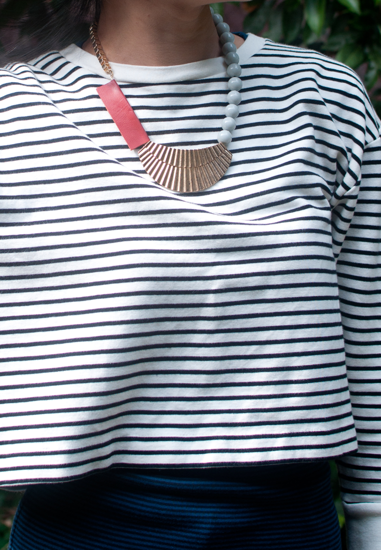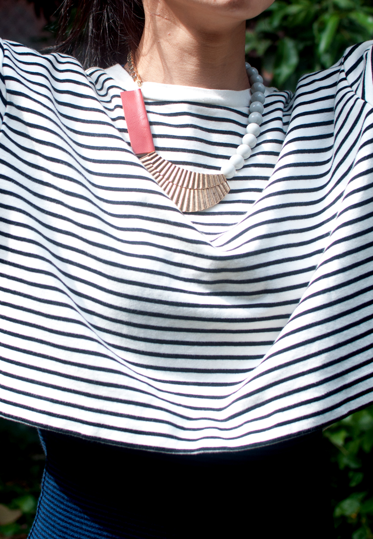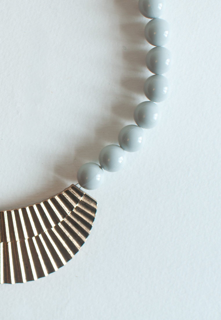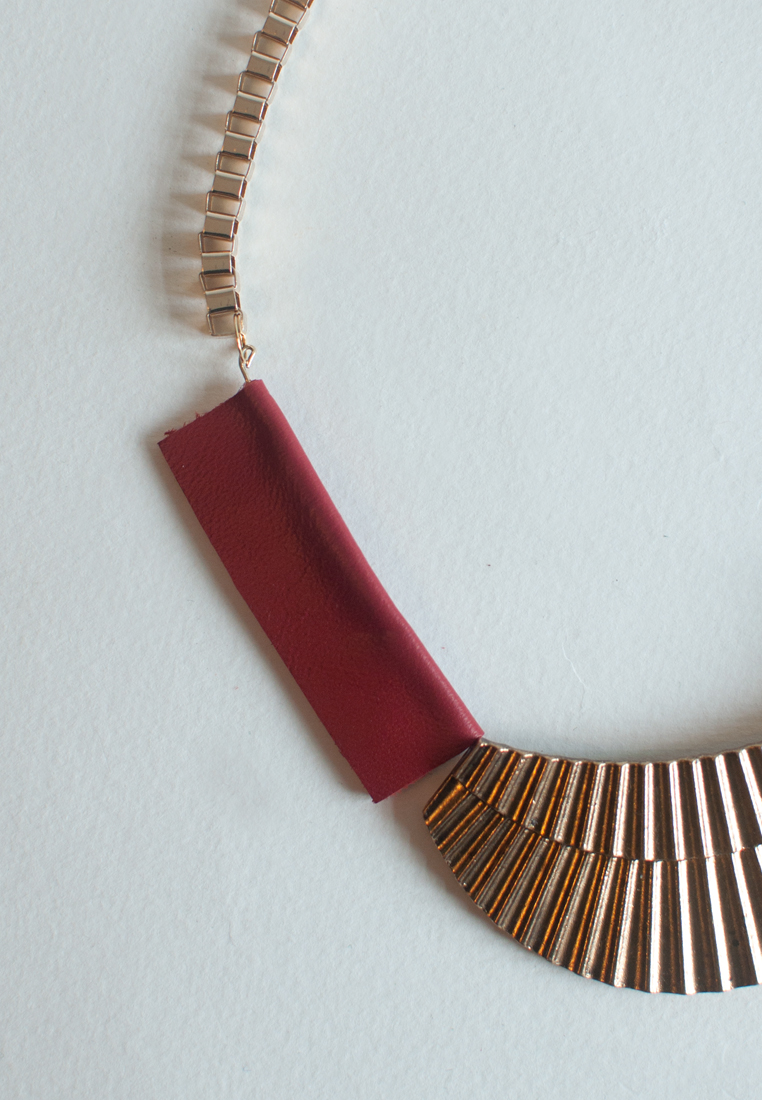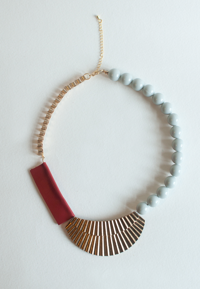 Resin faux pearl beads with a fashionable leather add unmistakable glamour to a mixed-media statement necklace.