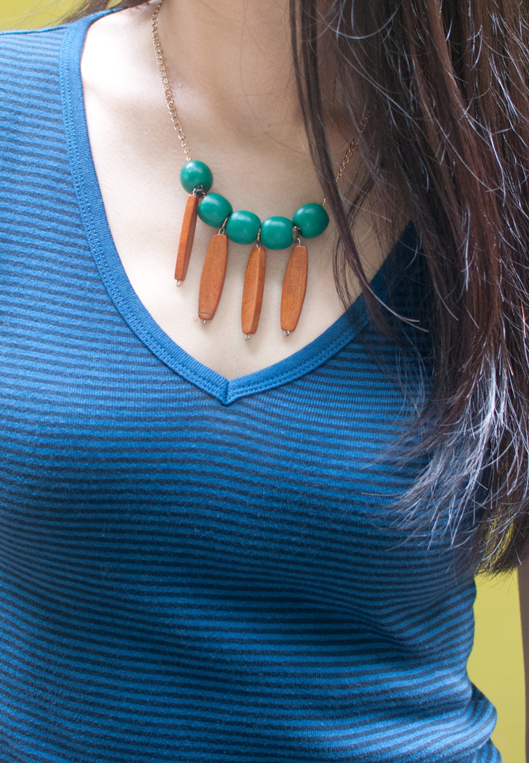 Wooden Beaded Pendent Necklace Green Brown Tree Statement Necklace For Girls Gift Ideas NL0672