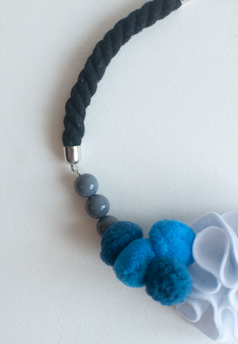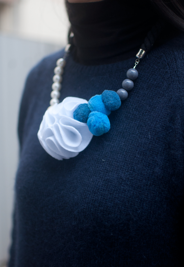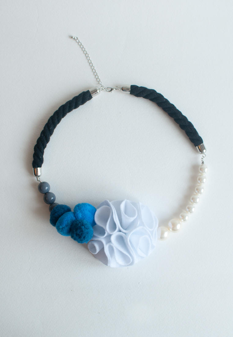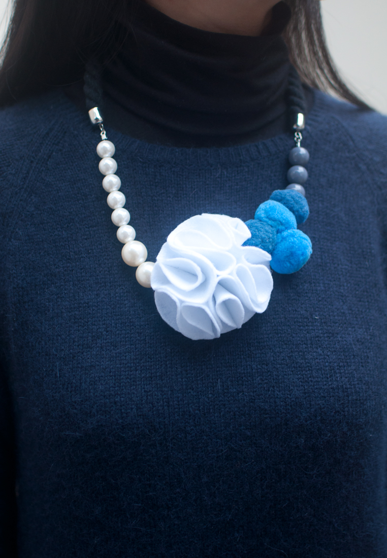 White Felt Flower Necklace by sanwaitsai. Handcrafted felt flower creates a polished handmade necklace with resin beads.