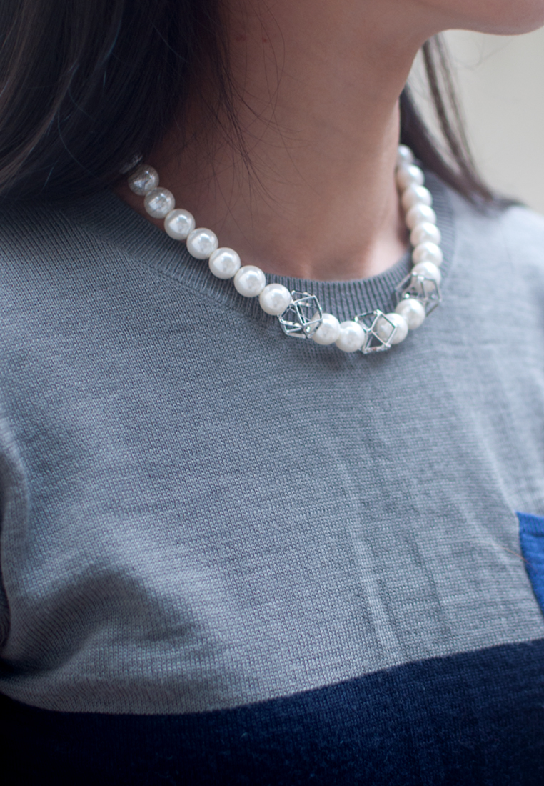 Geometric Metal Faux Pearls Collar Necklace NL0806