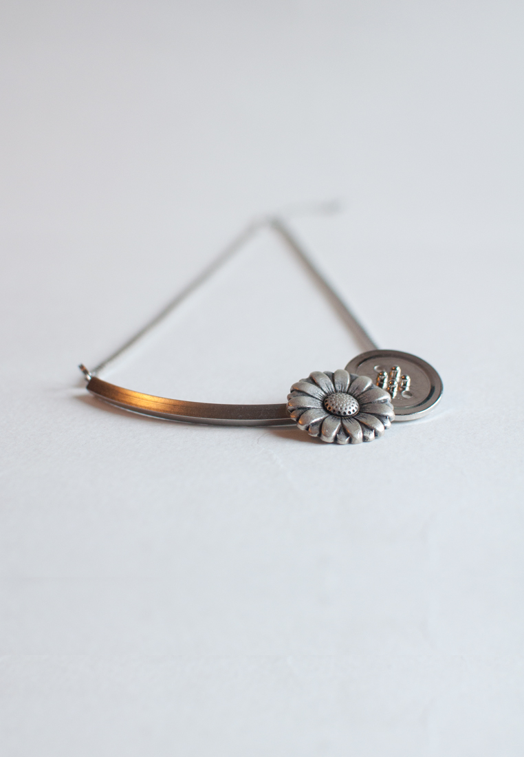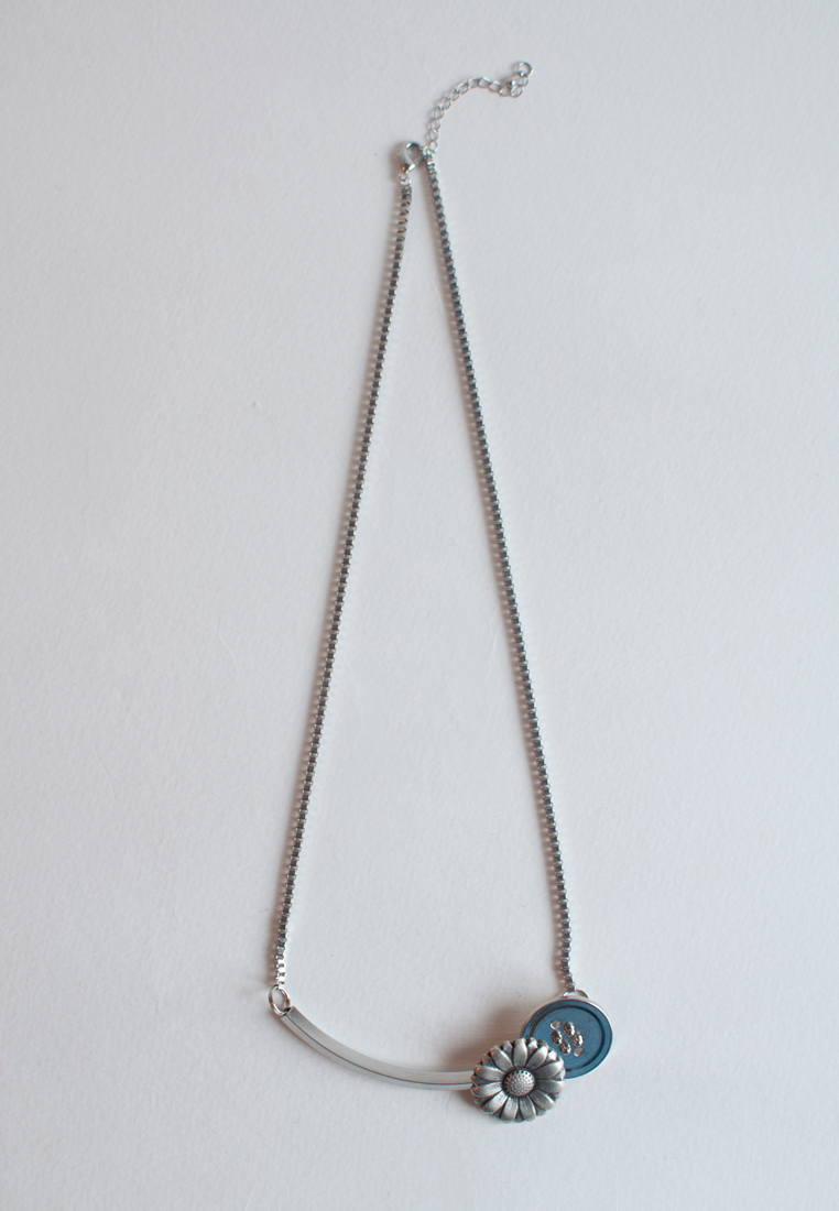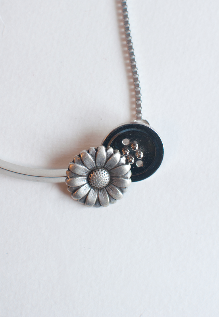 Silver Flower Button Necklace NL0881