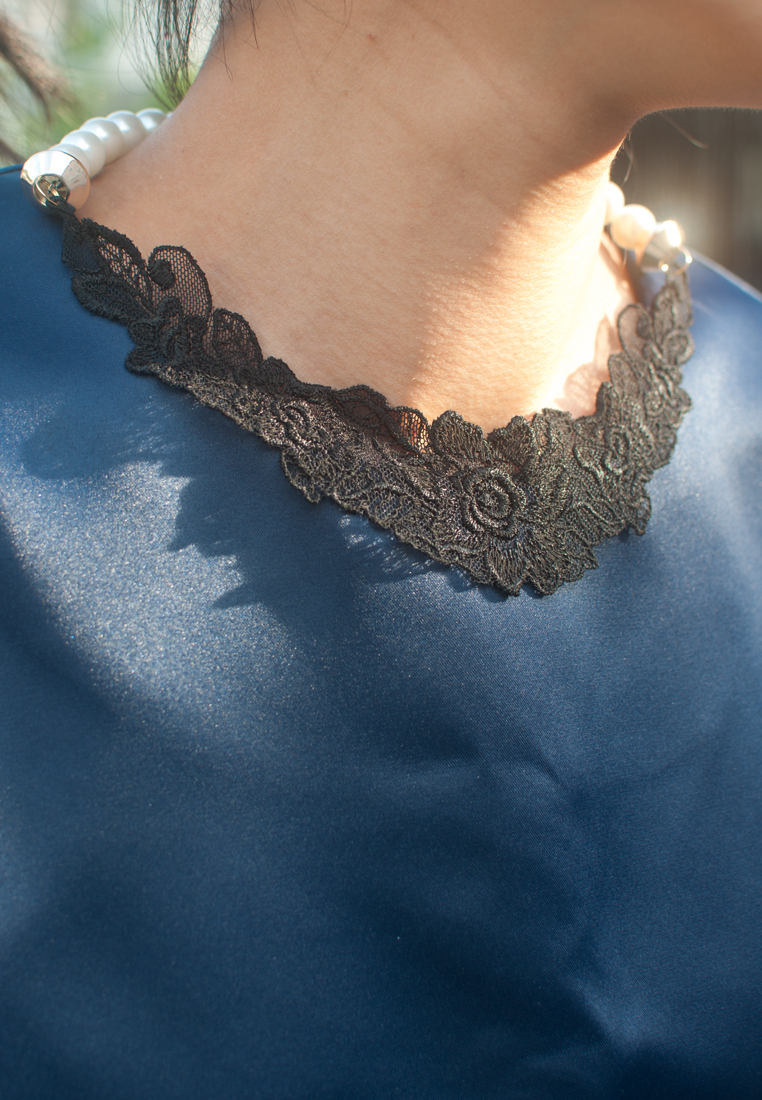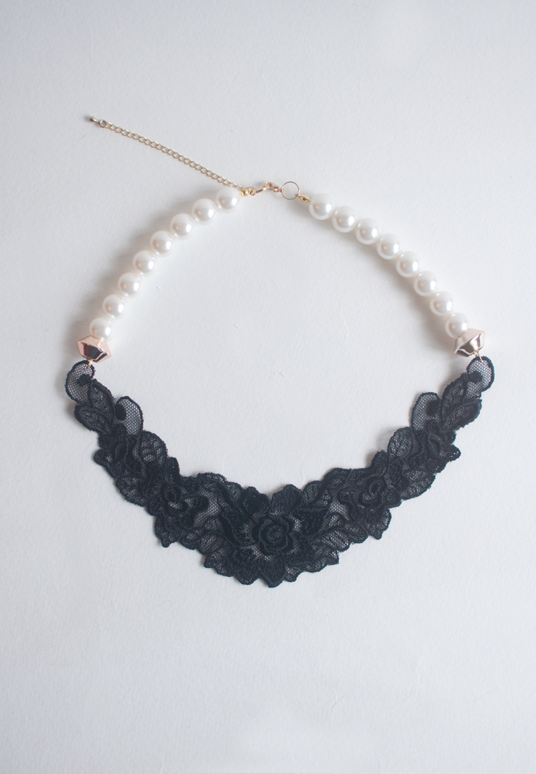 A elegant handcrafted statement necklace offers an impressive vintage style with a vintage lace.