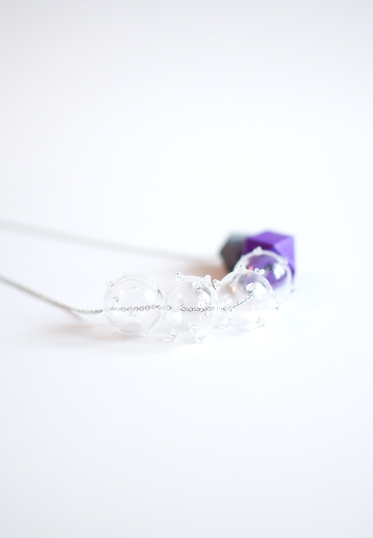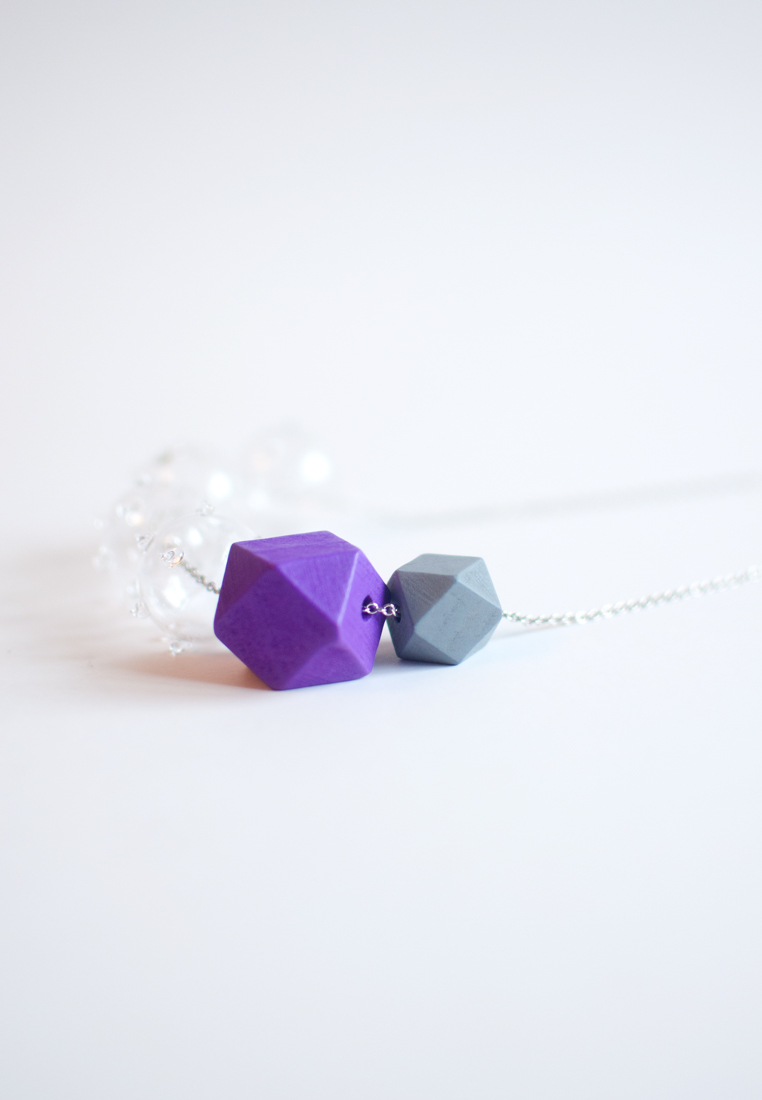 A stylish handcrafted glass necklace offers an impressive style with different shapes of wood beads.