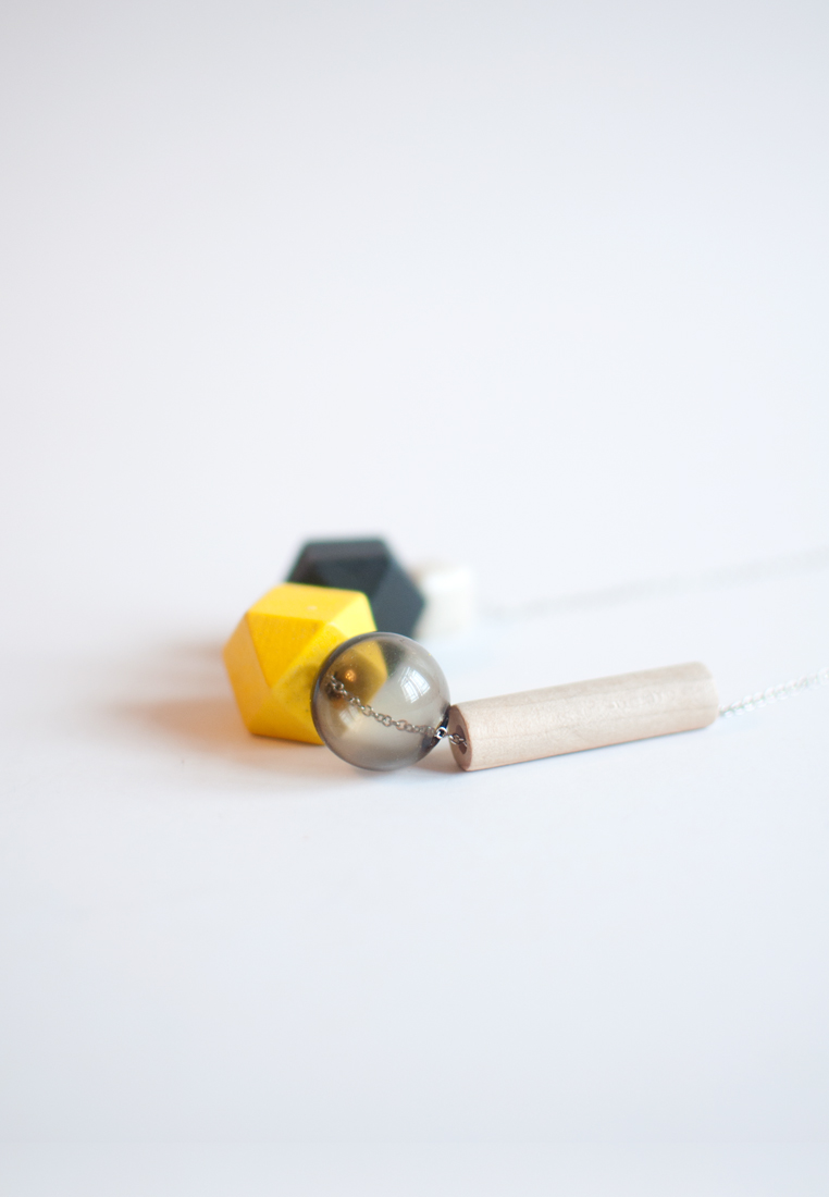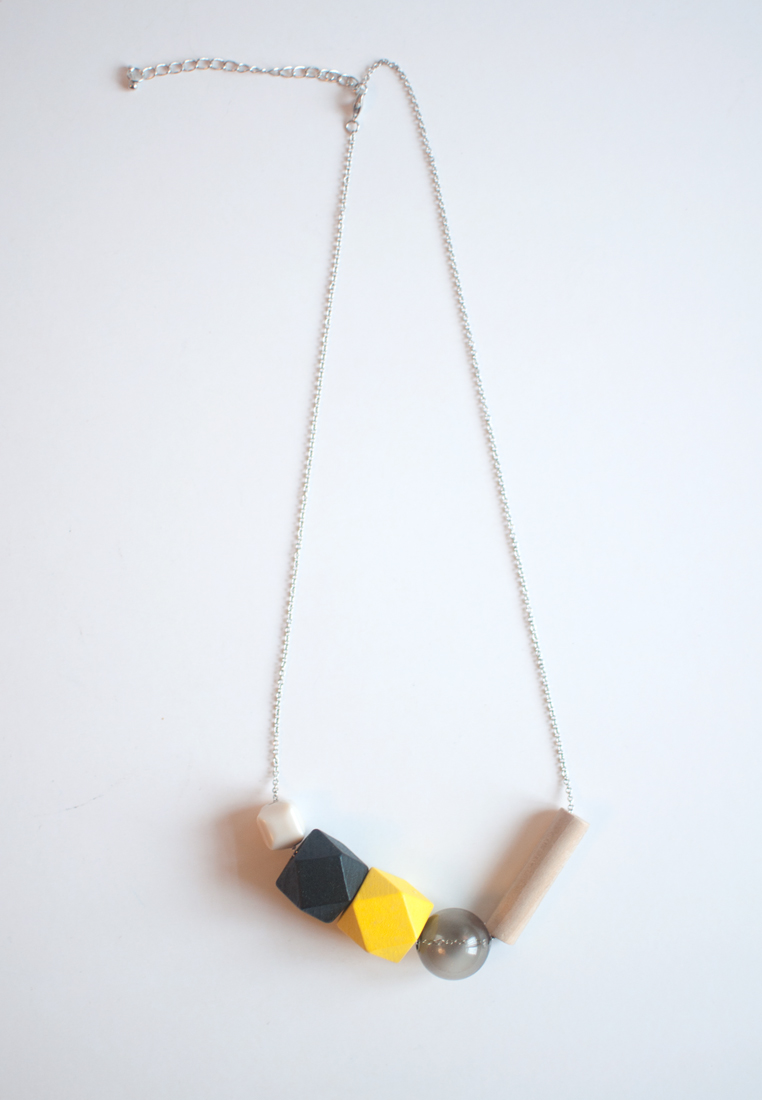 A stylish handcrafted glass necklace offers an impressive style with wood beads.