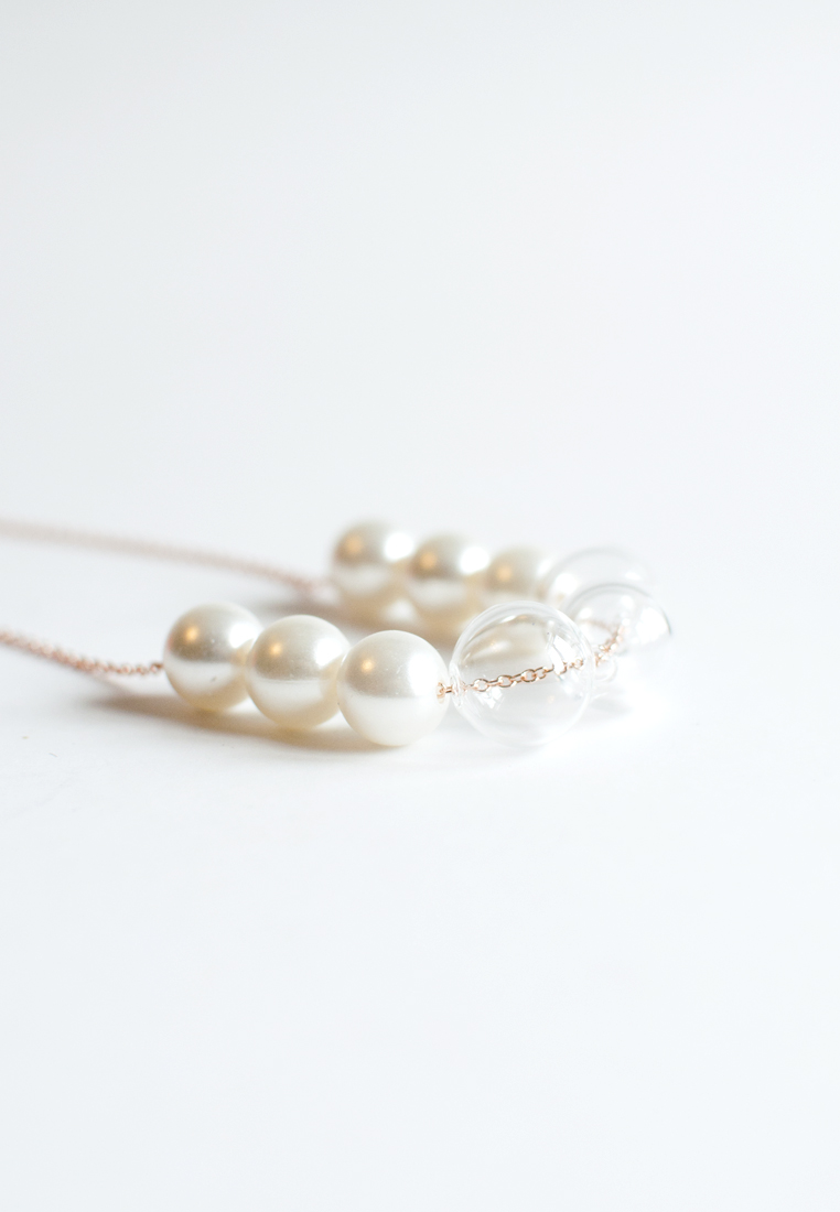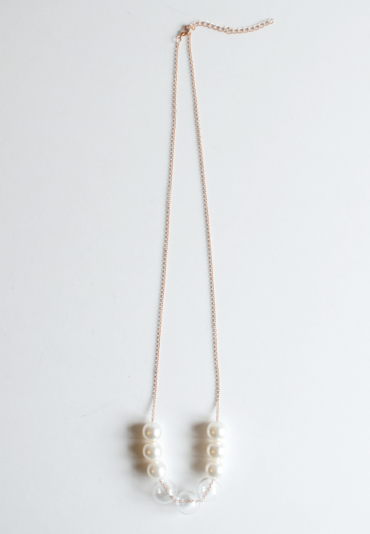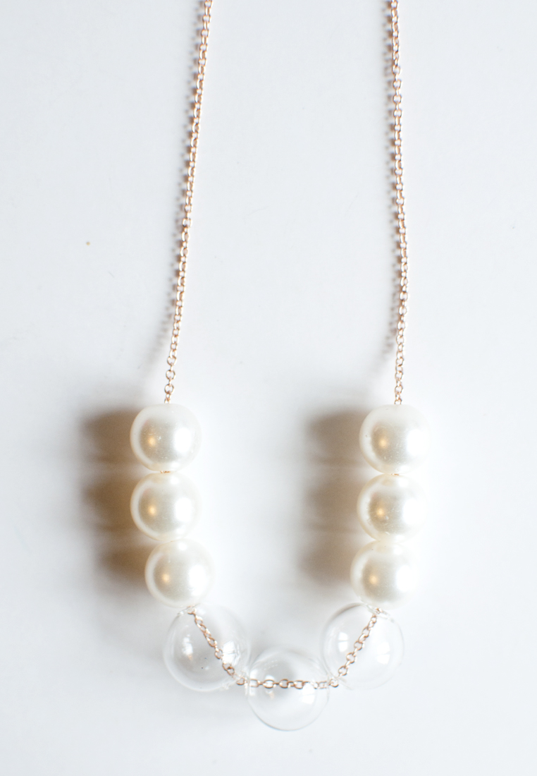 Classic faux pearls and glass beads make an elegant statement necklace.