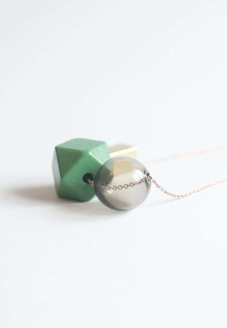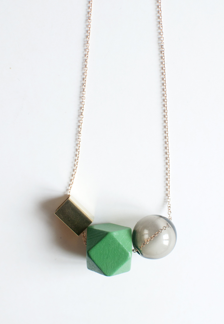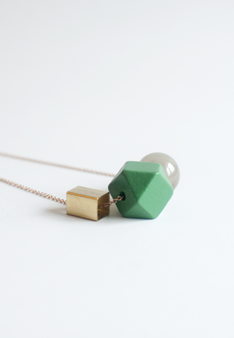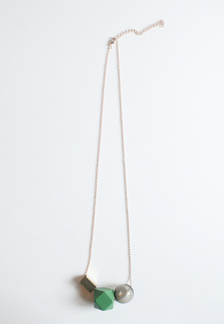 Green Wooden Glass Metal Necklace NL1016
