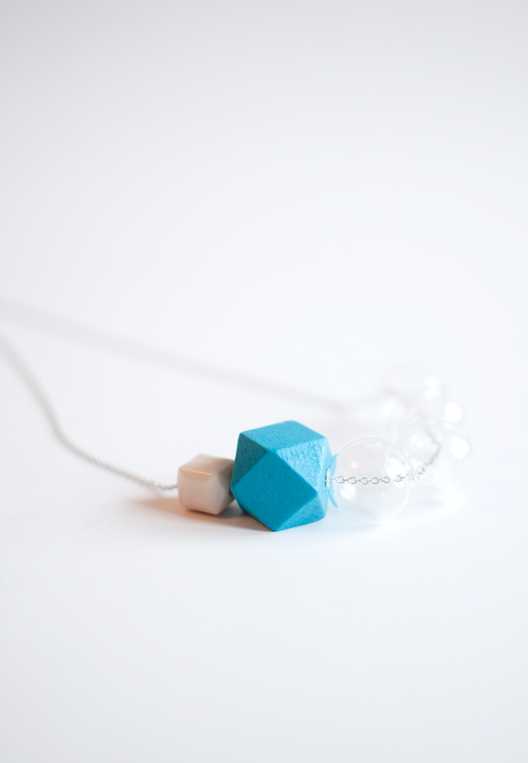 A stylish handcrafted glass necklace offers an impressive style with different shapes of different materials.