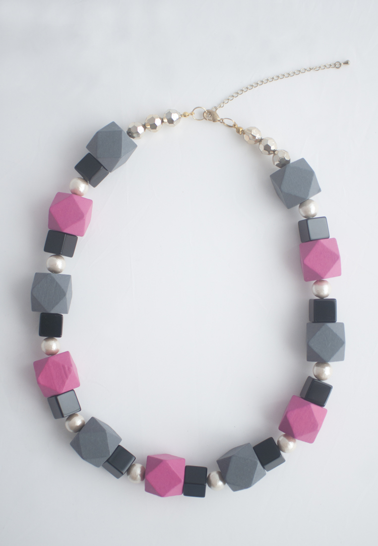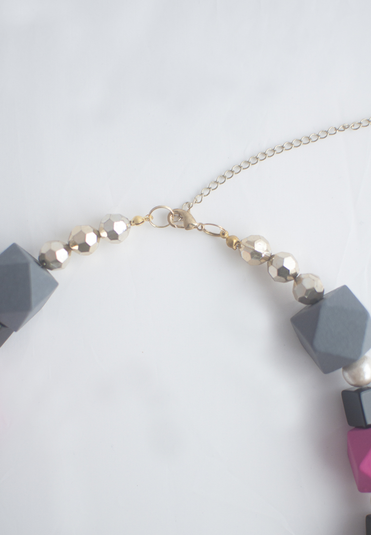 Make a bold, global-chic with this large statement necklace mixed and matched by different materials and colors.