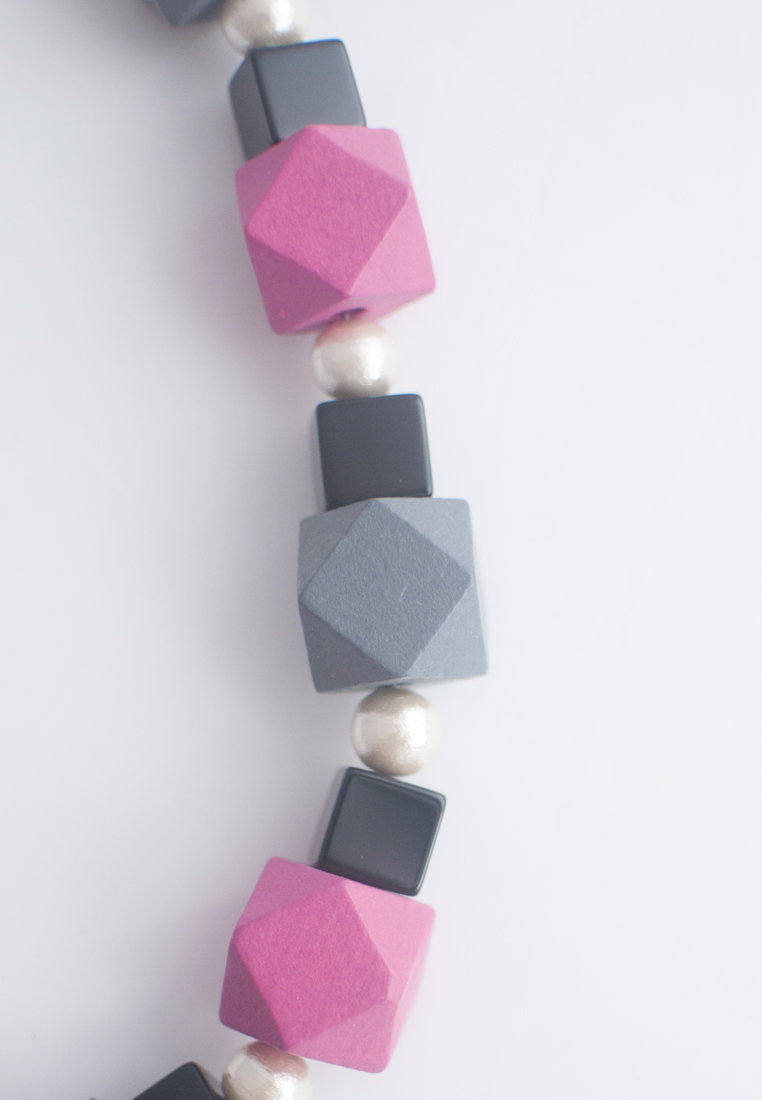 Wooden Black Onyx Cotton Pearls Necklace NL1067