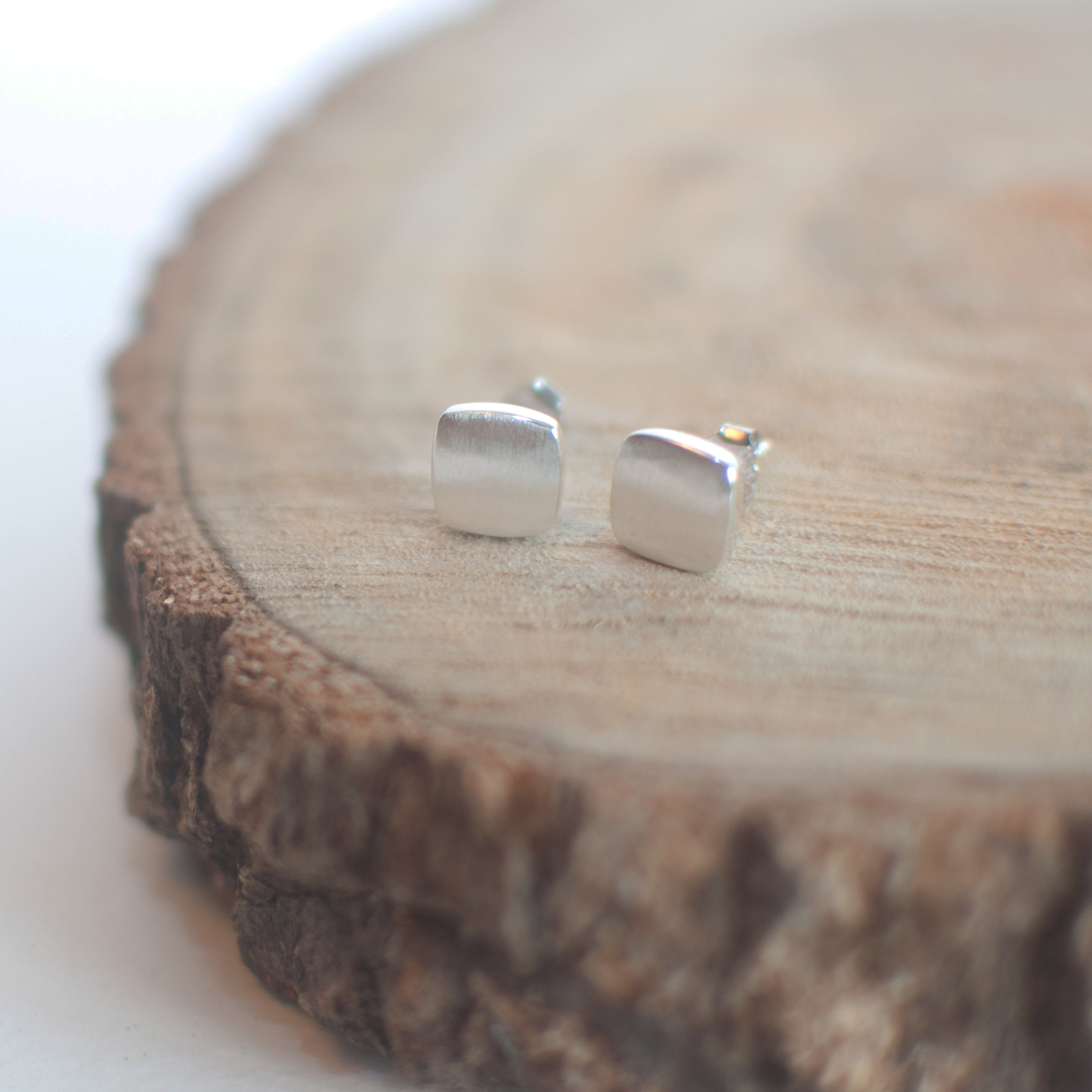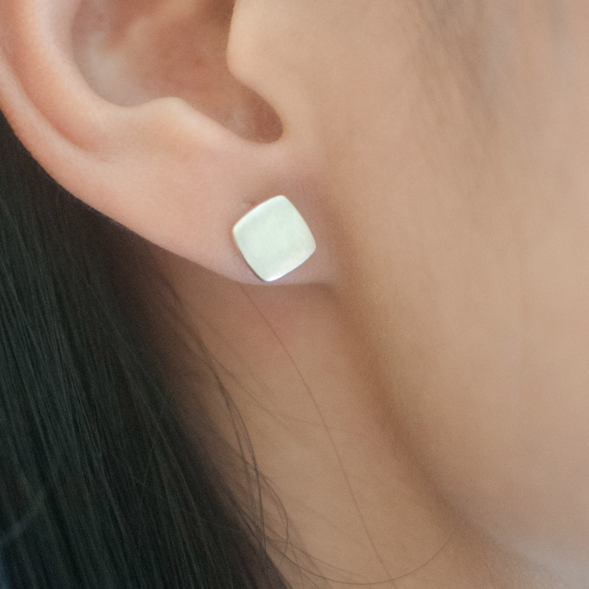 7mm Square Stud Earrings Sterling Silver Metal Earrings, Wedding Earrings Bridesmaid Earring Vintage Fashion Earrings ER0413
