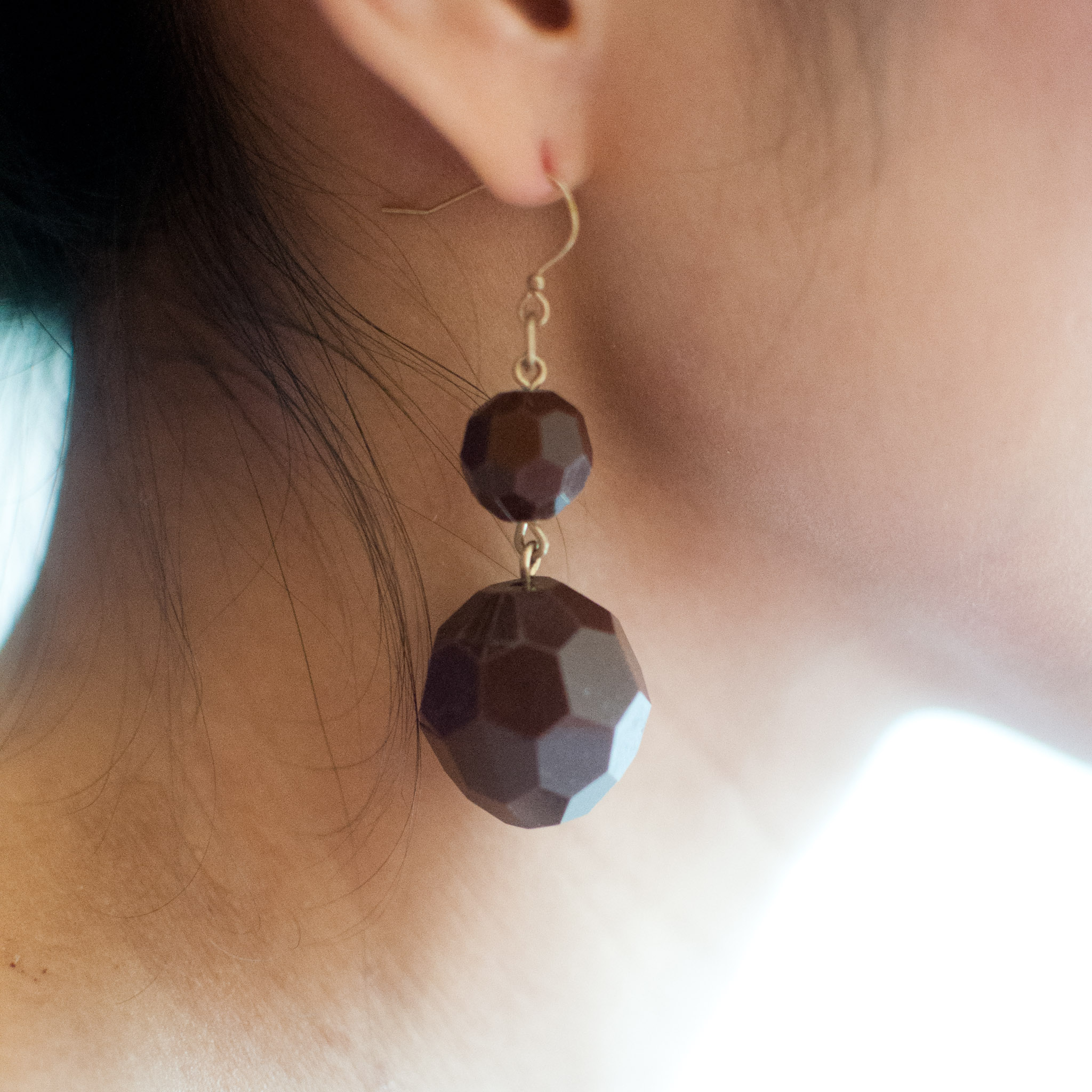 Hammered Ball Drop Earrings, Geometric Brown Large Plastic Acrylic Small Beads Dangle Earrings, ER0428