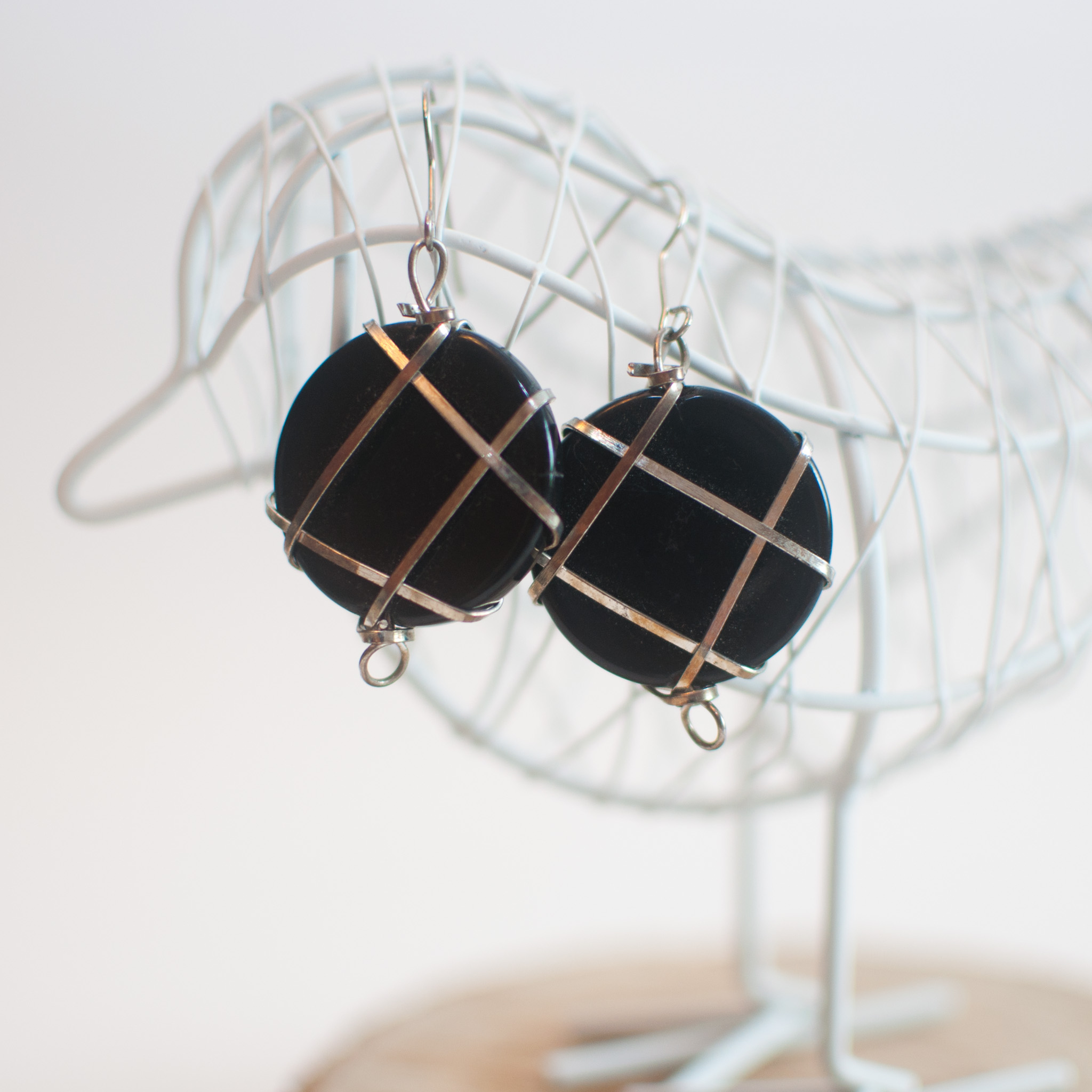 Copper Wire Black Drop Earrings, Metal Wire Jewelry, Handmade Metal Jewelry, ER0794