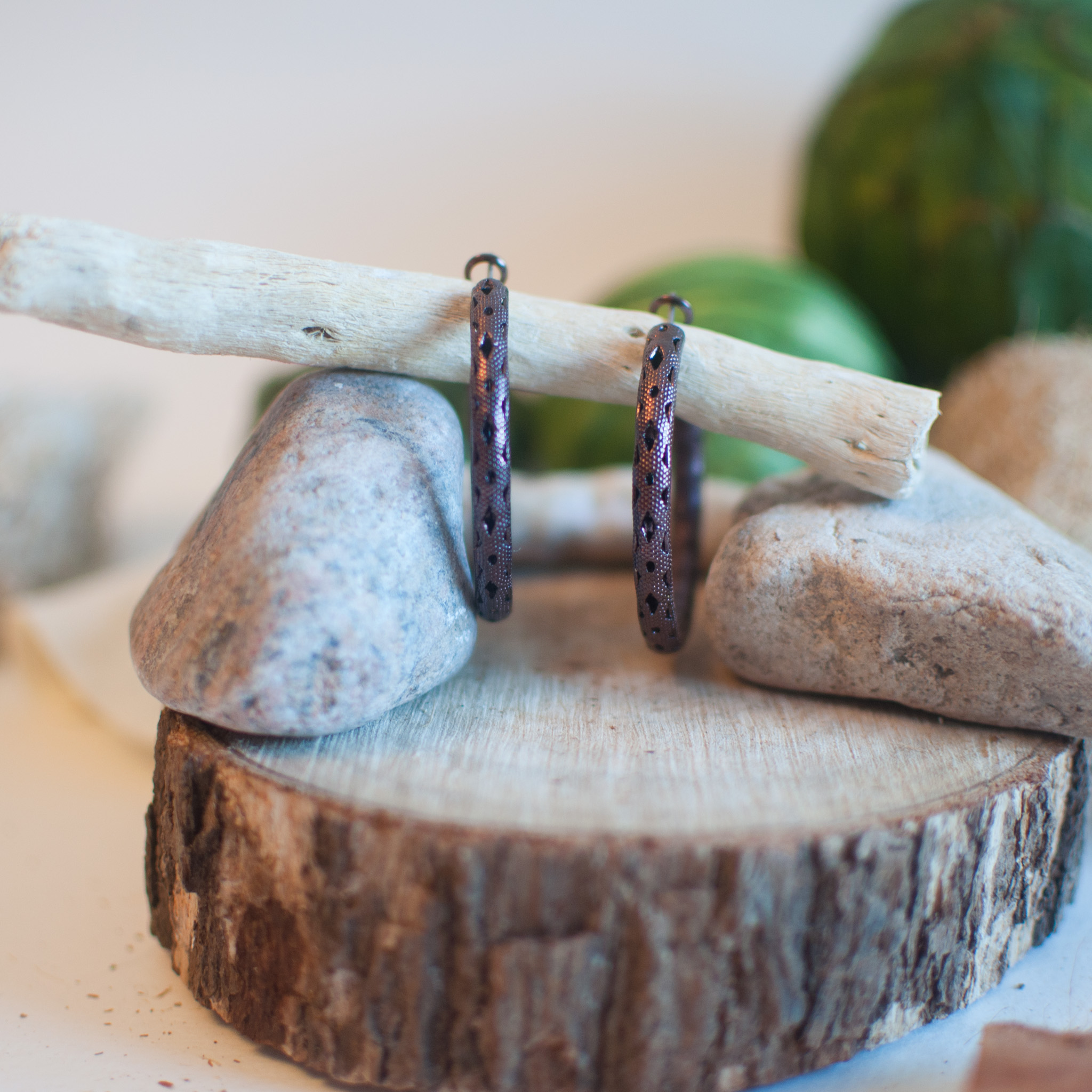 Essential hoop earrings are hand flattened into strikingly slim profiles to better highlight the warm, sustainable beauty of brass.