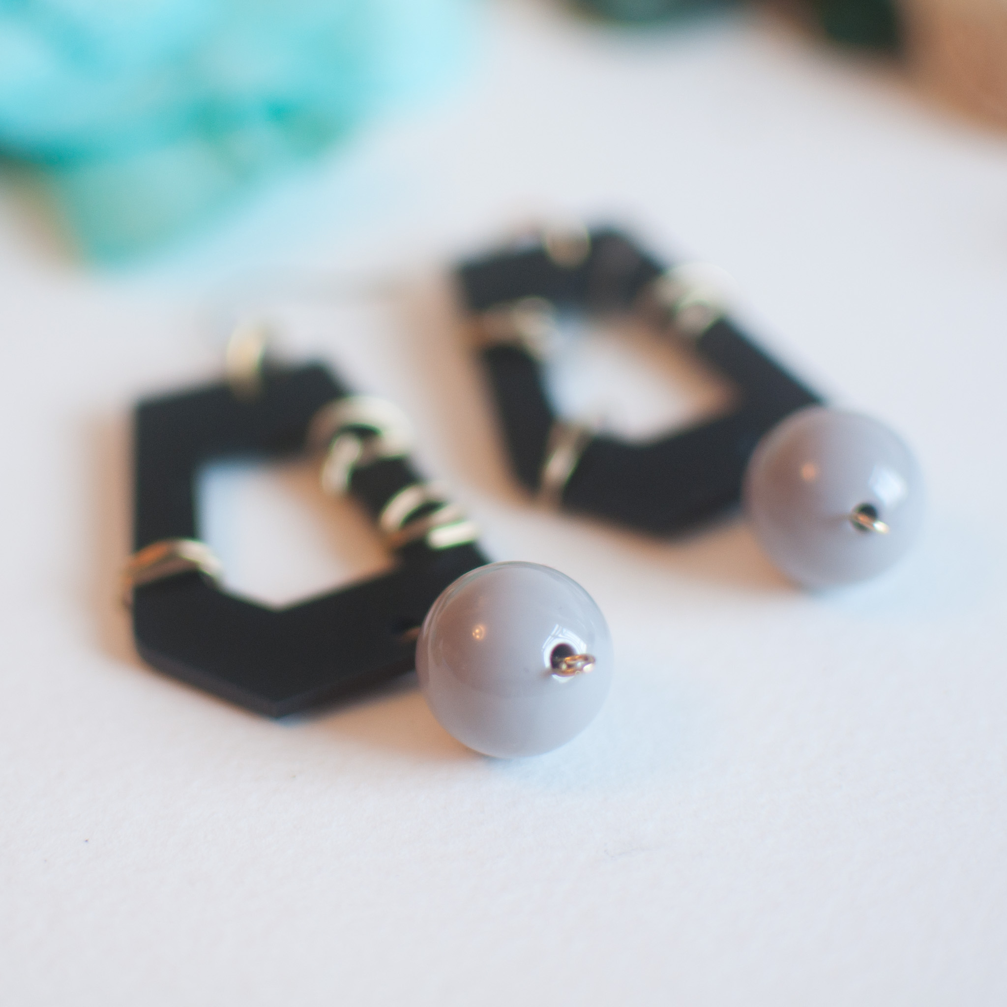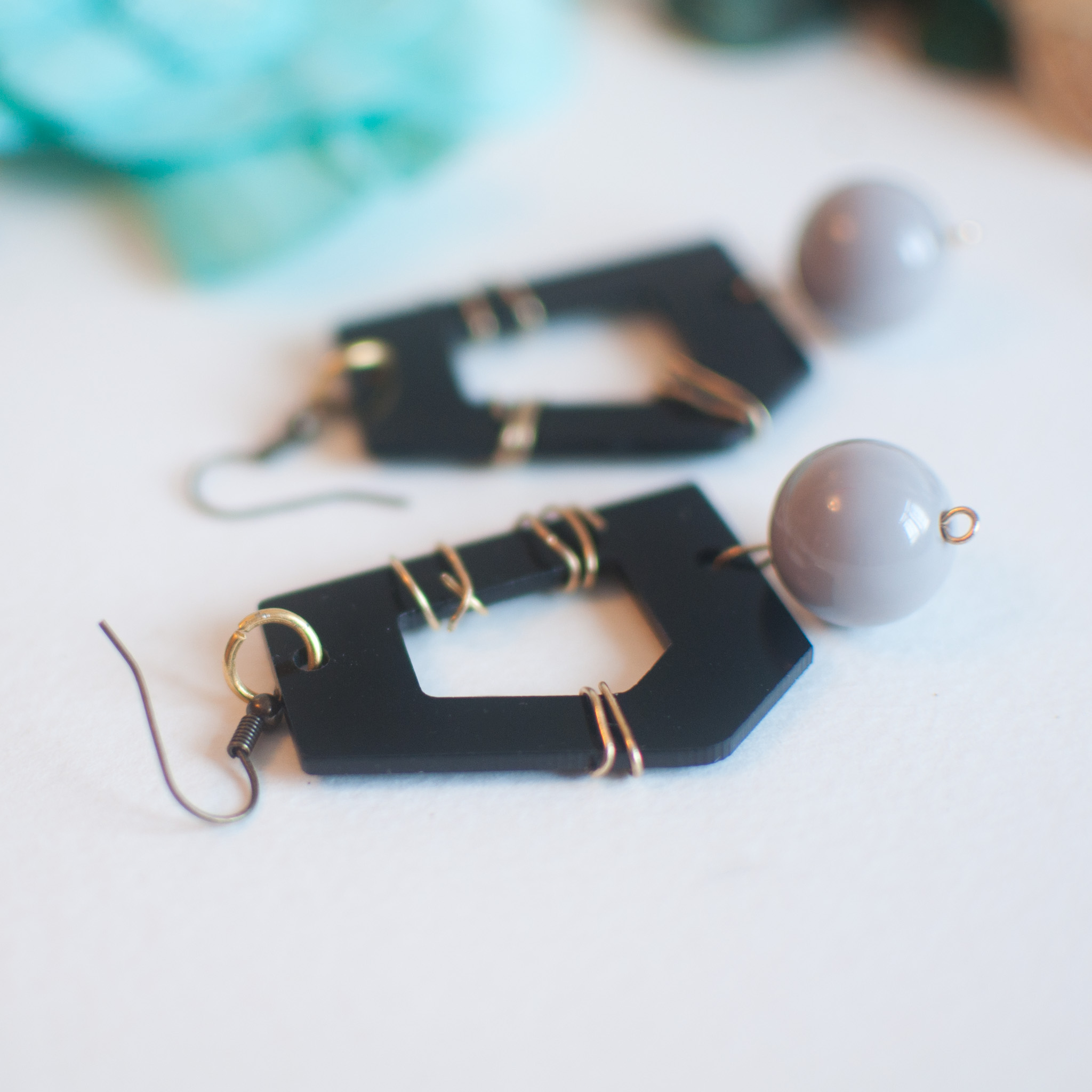 Dangle Black Gray Bridal Wedding Earrings ER0659