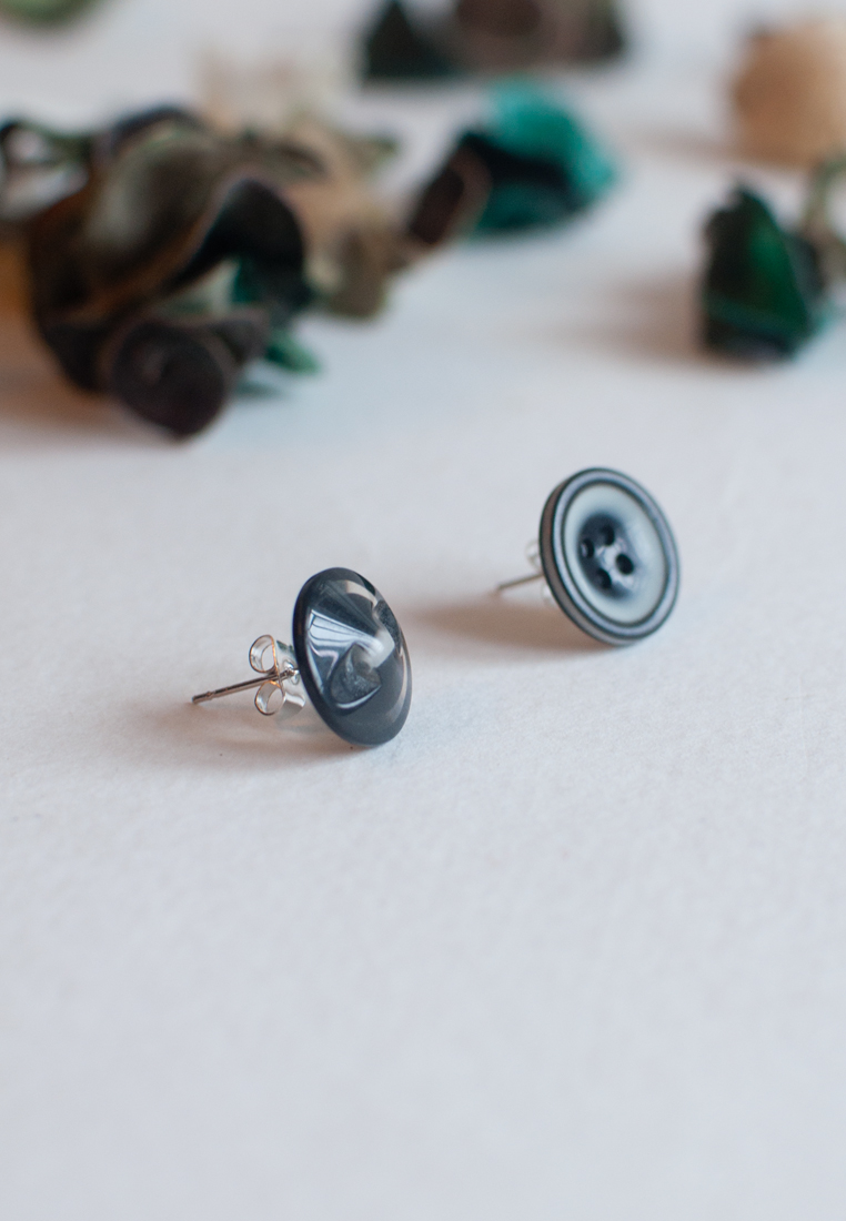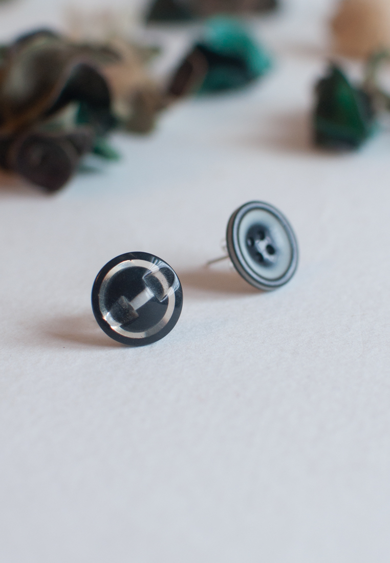 Two vintage buttons with different pattern form a pair of unique earrings.