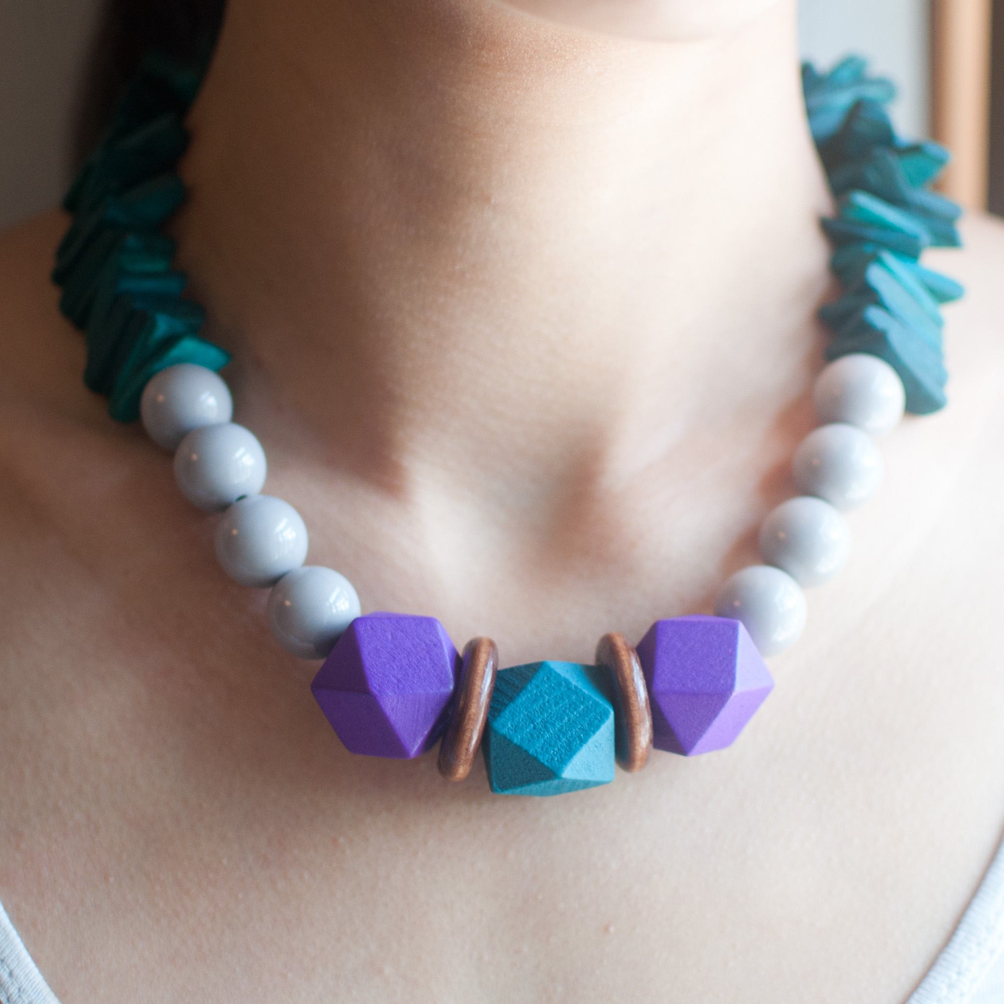 Length: 16" Extender: 2 1/2" Wood / plastic / acrylic / sterling silver / silver-tone plated Weight: 95g