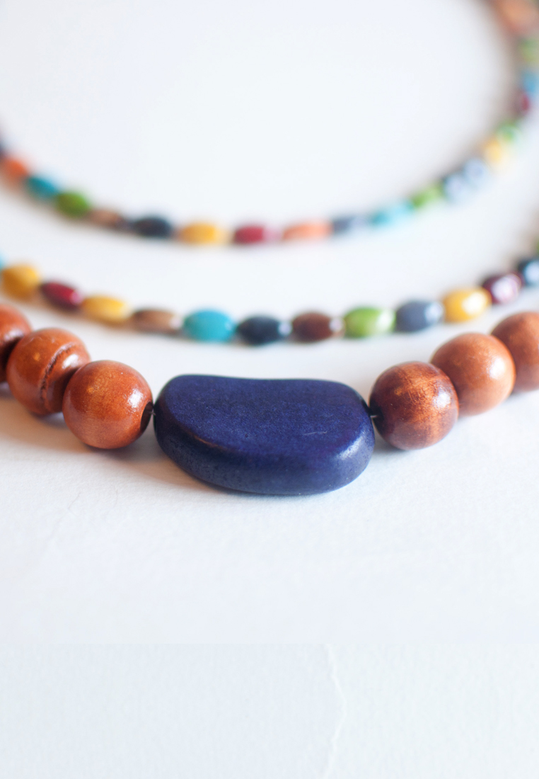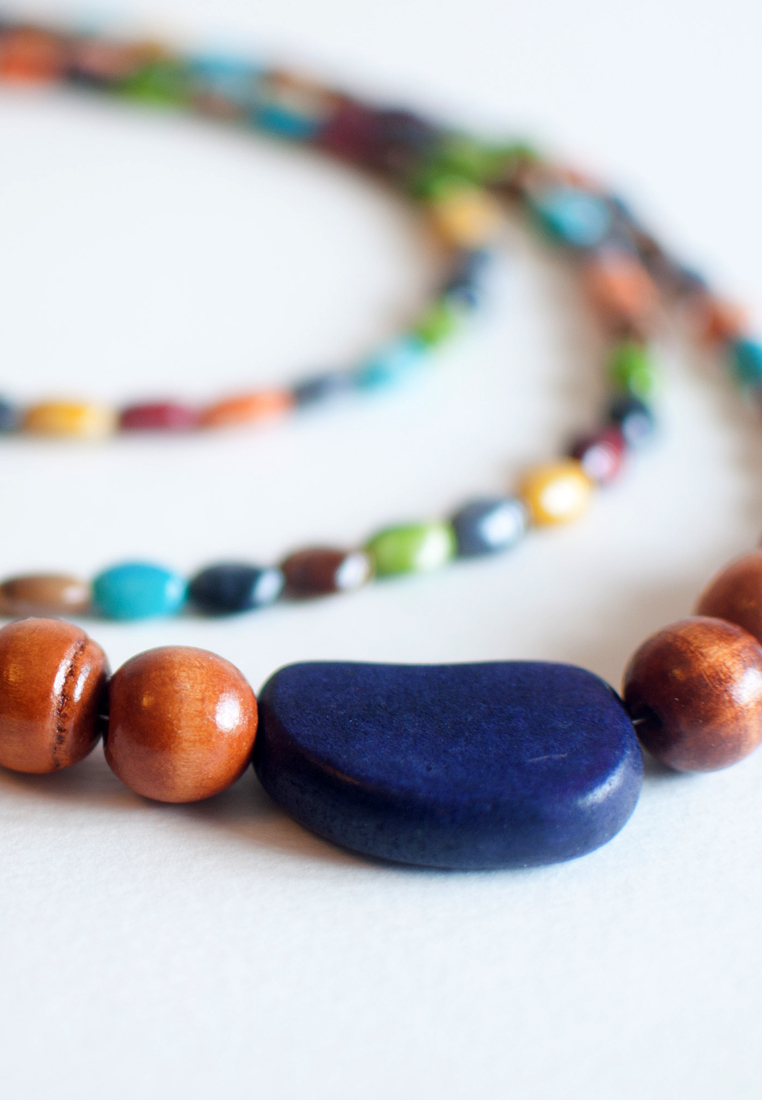 Long Multicolored Wooden Beads Necklace NL0684