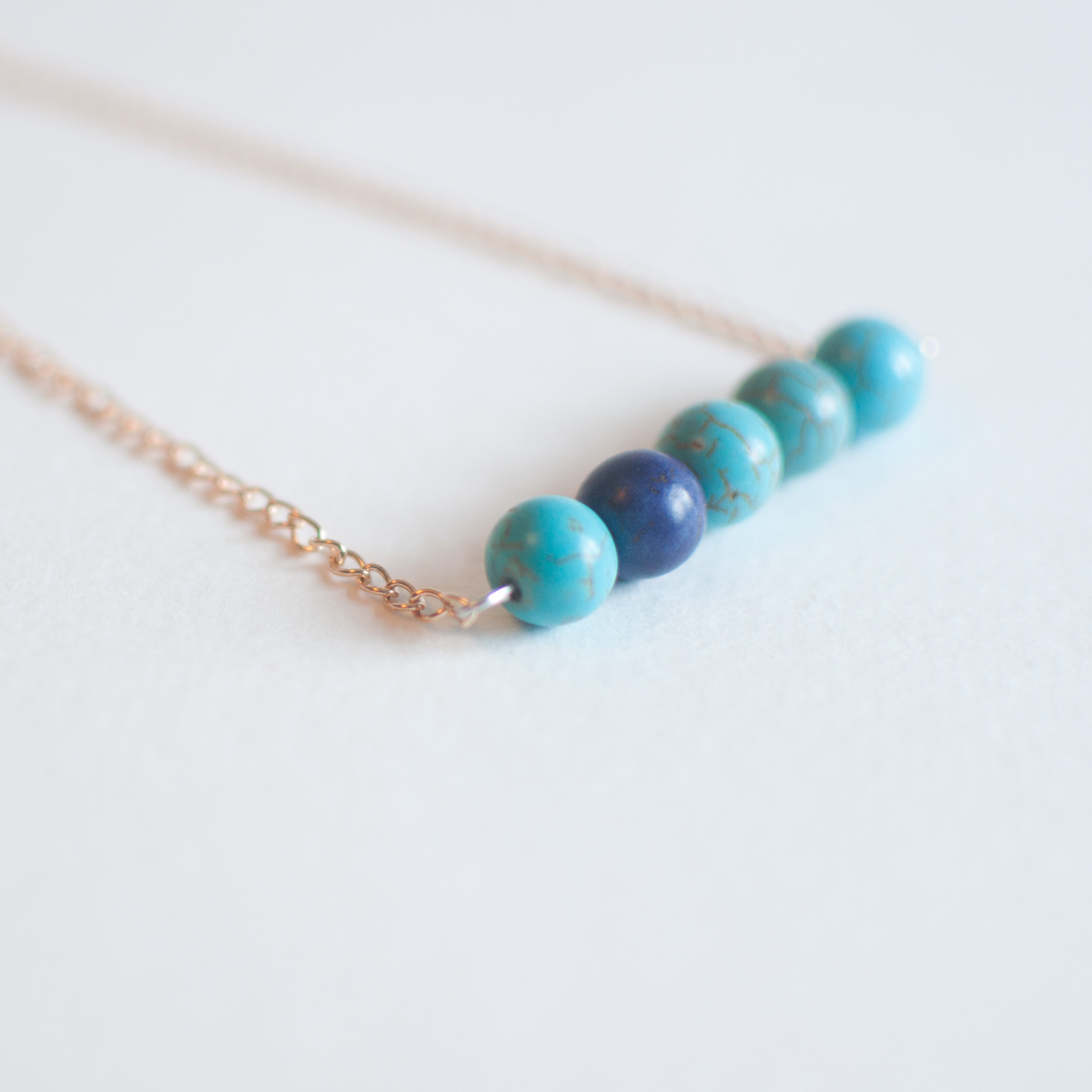 Tiny Sky Dark Blue Beads Gold Chain Necklace NL0721