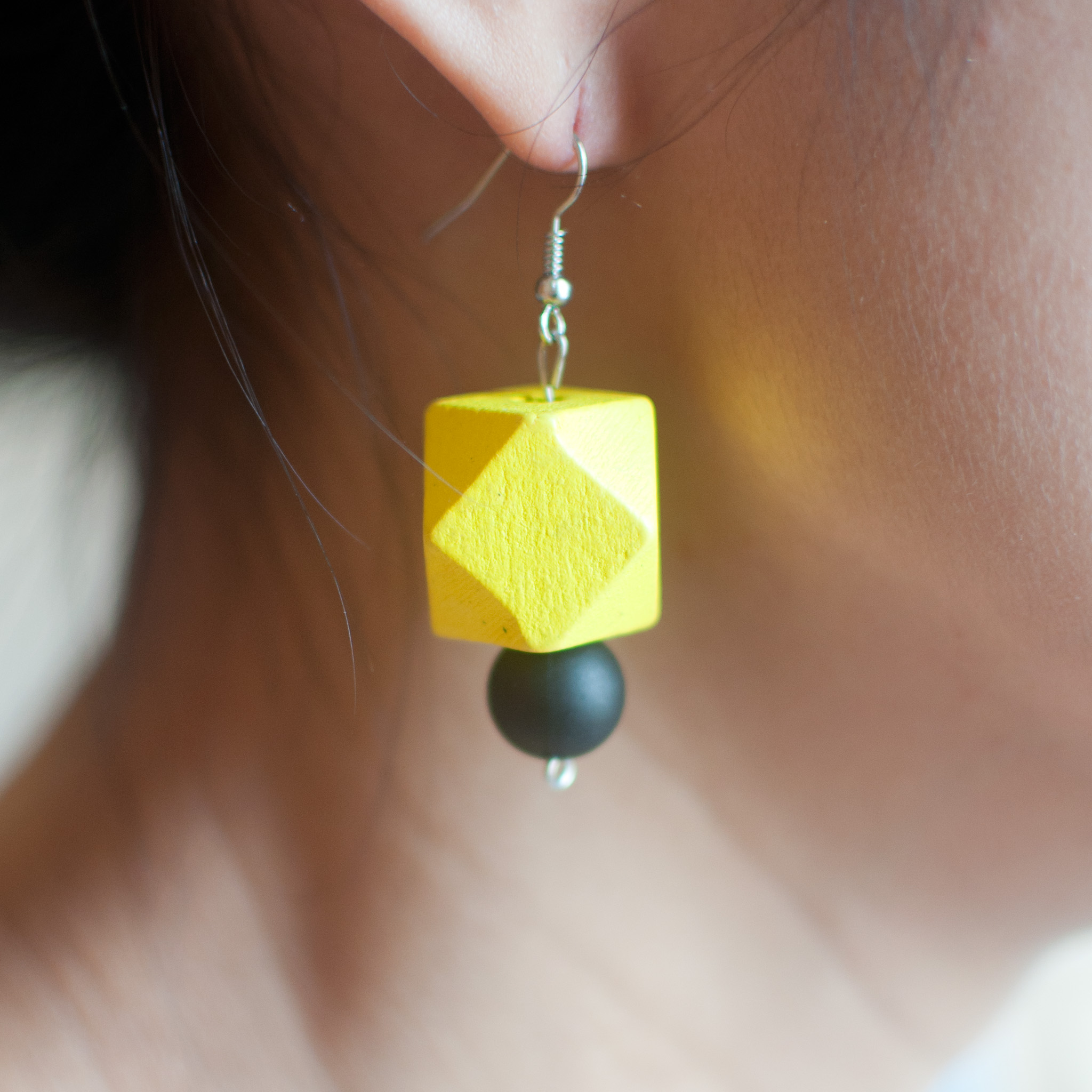 Black and Yellow Wooden Drop Earrings ER0635