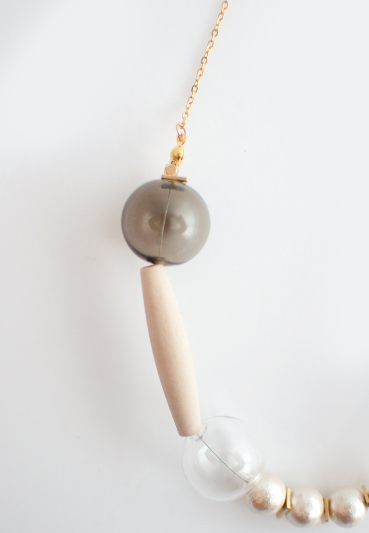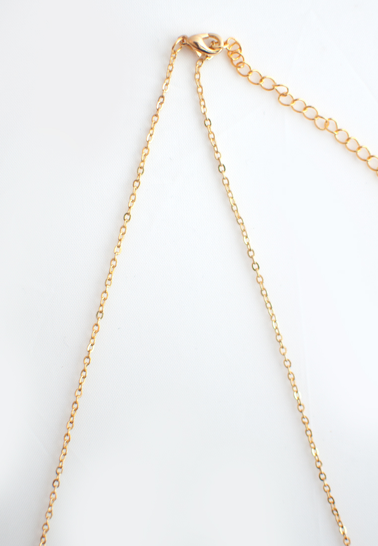 Length: 20" Extender: 3" Weight: 18g Lobster clasp closure Wood / glass / metal / cotton / gold plated
