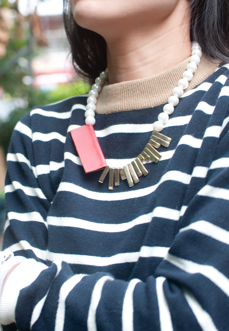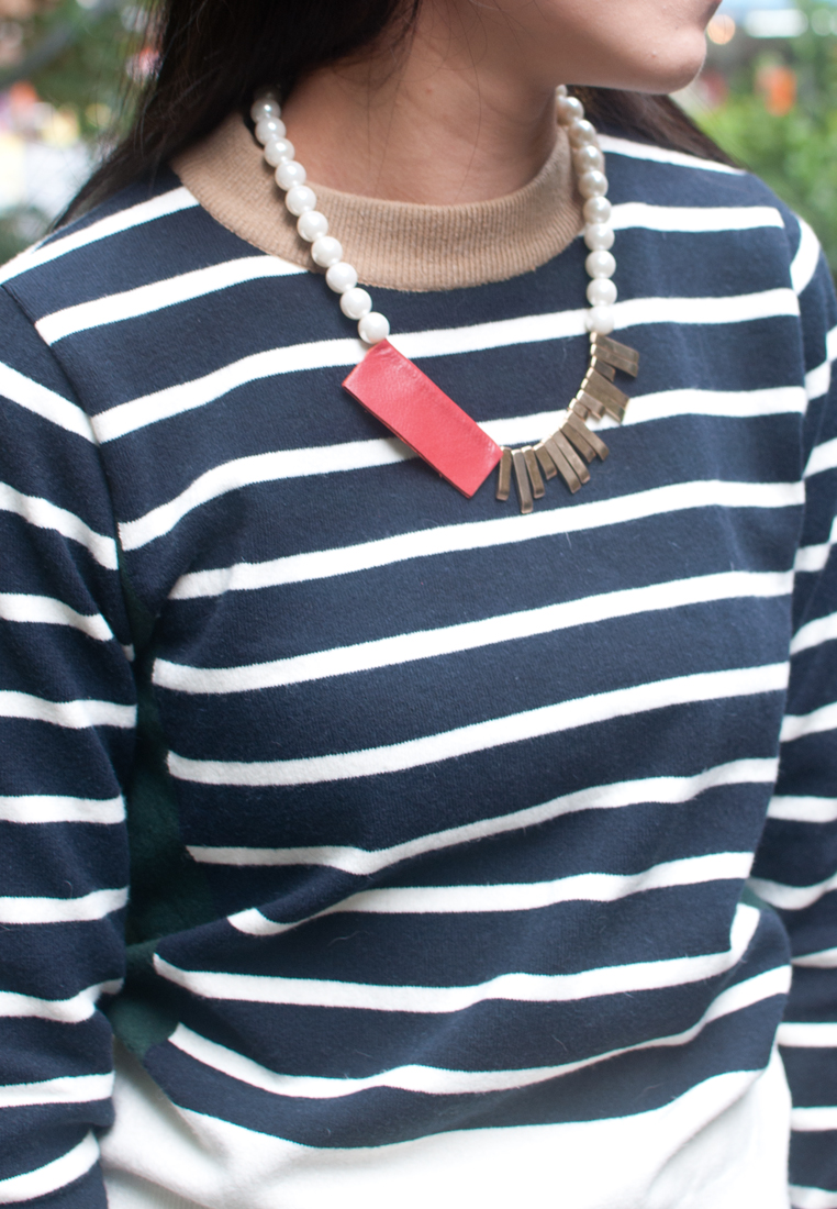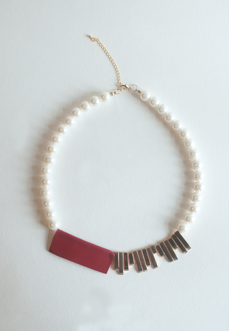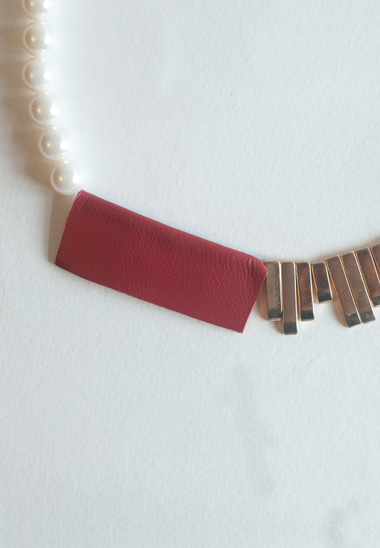 Red Leather Gold Metal Glass Pearl Statement Necklace, Bridal Pearl Statement Necklace, Faux Fashion Pearl Necklace, NL0780